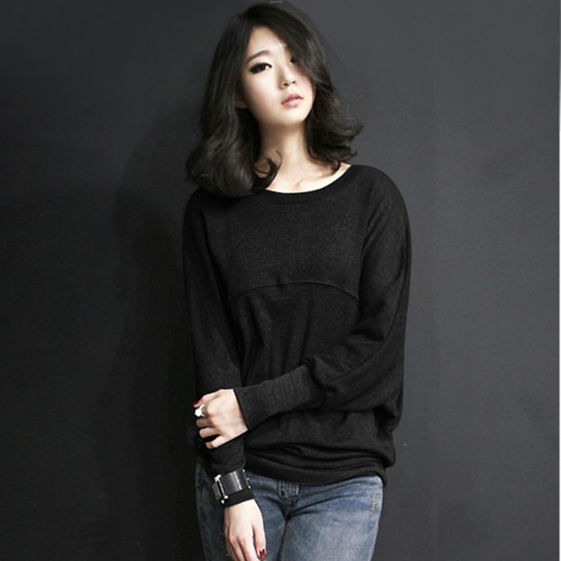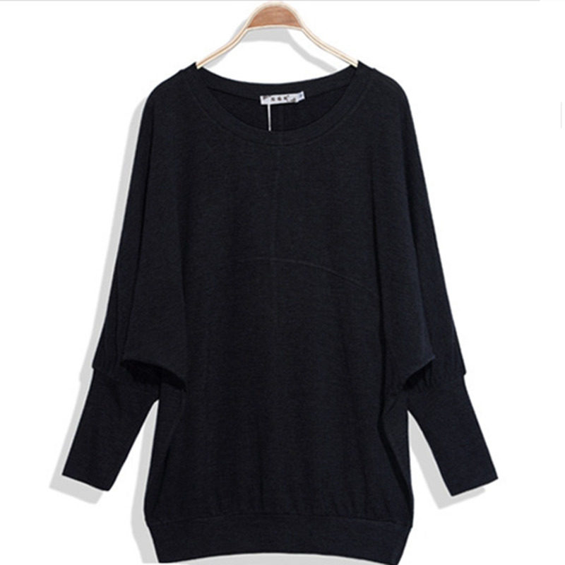 大码纯棉宽松200斤显瘦长袖蝙蝠衫t恤卫衣女春秋冬装圆领打底上衣