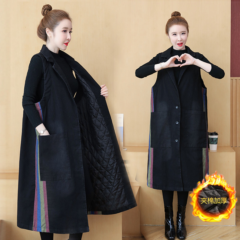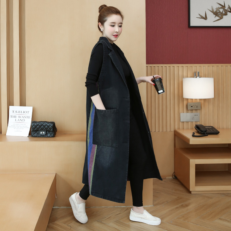牛仔马甲女超长款过膝显瘦无袖马夹外套百搭加肥加大码西服坎肩潮