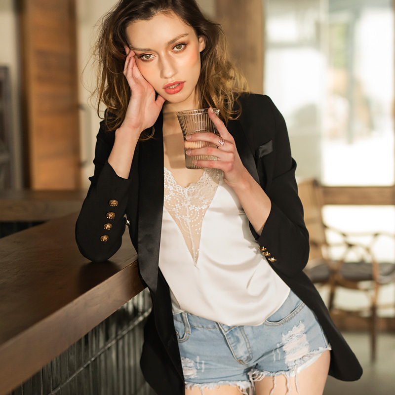 白色V领蕾丝美背吊带小背心女内搭设计感 小西装带胸垫冰丝打底衫