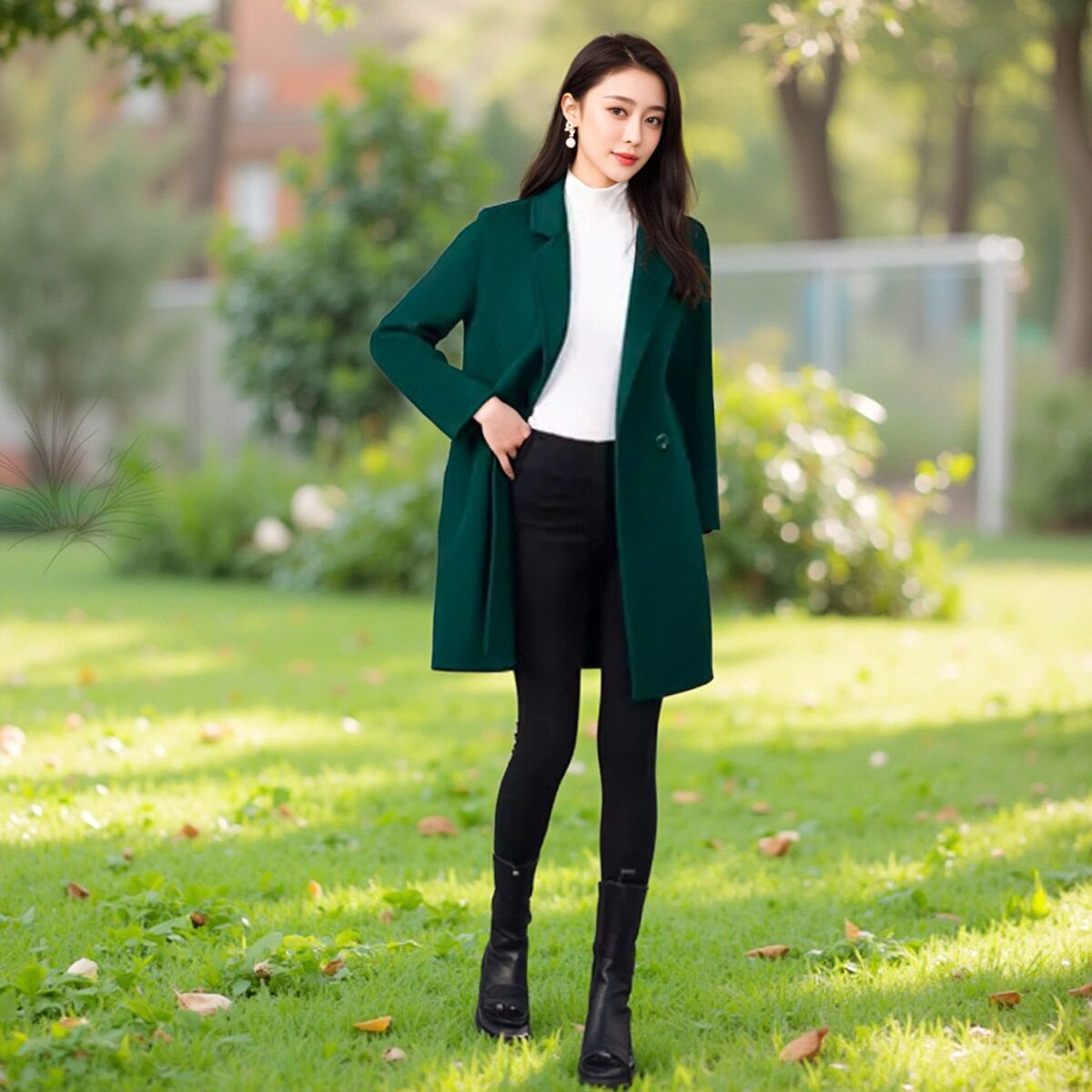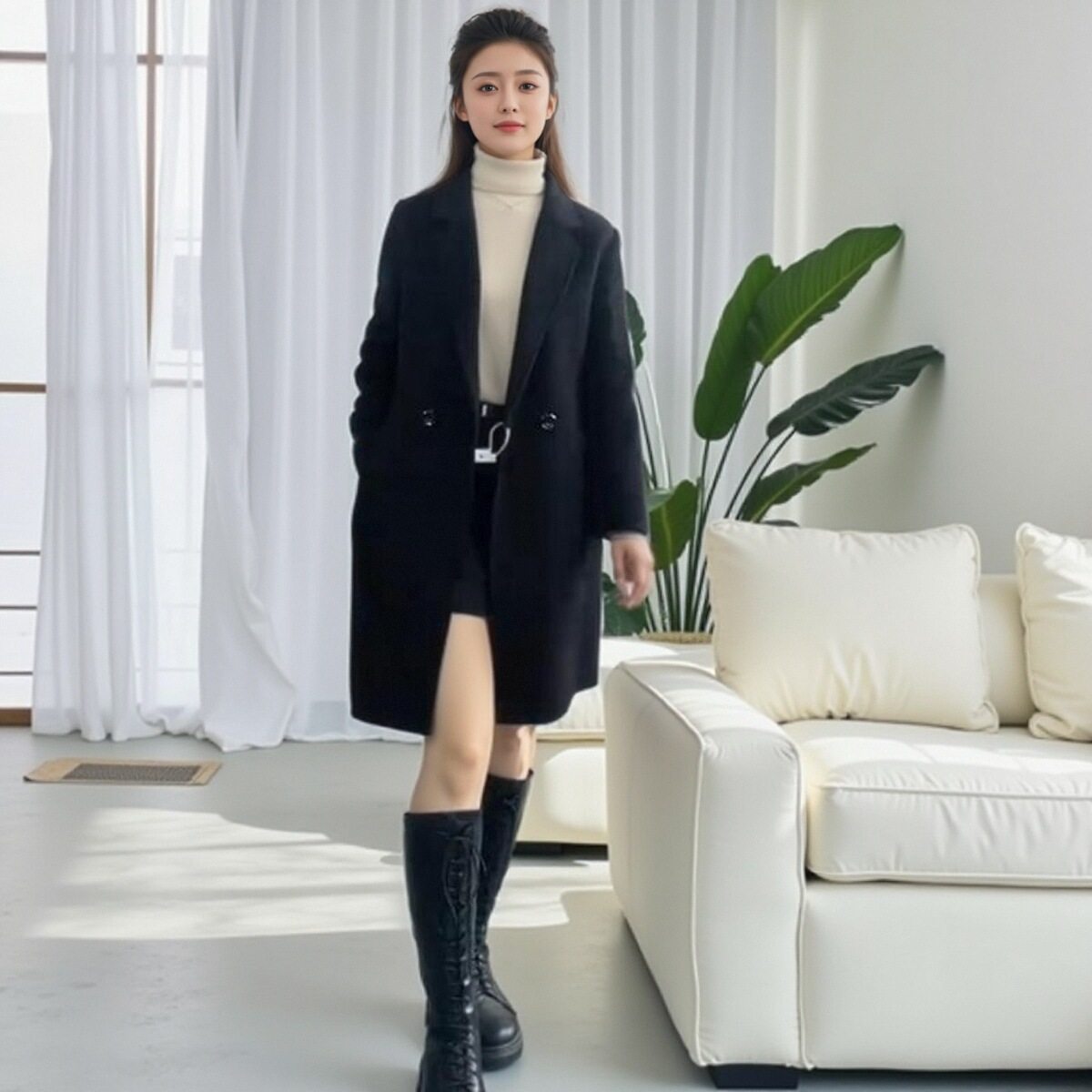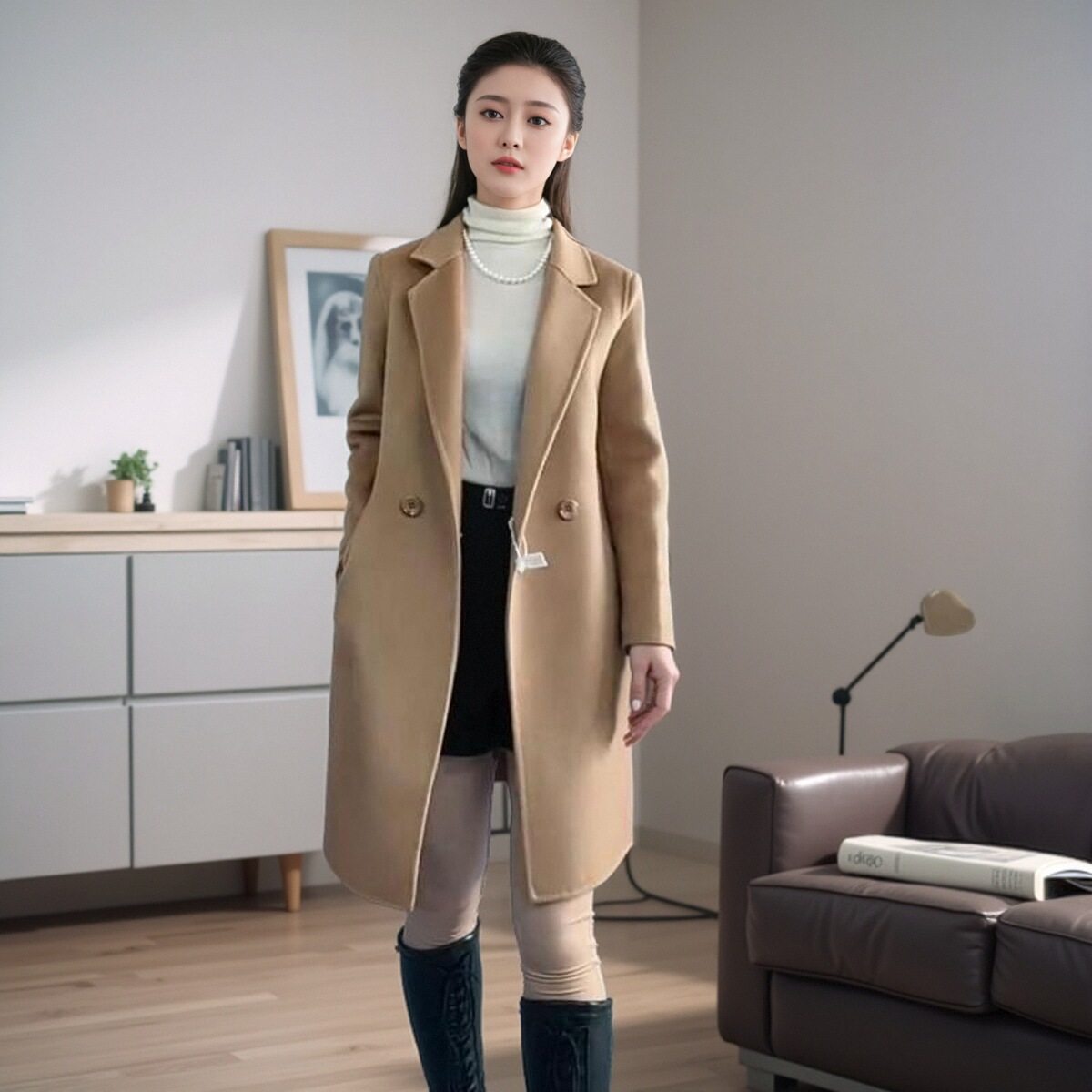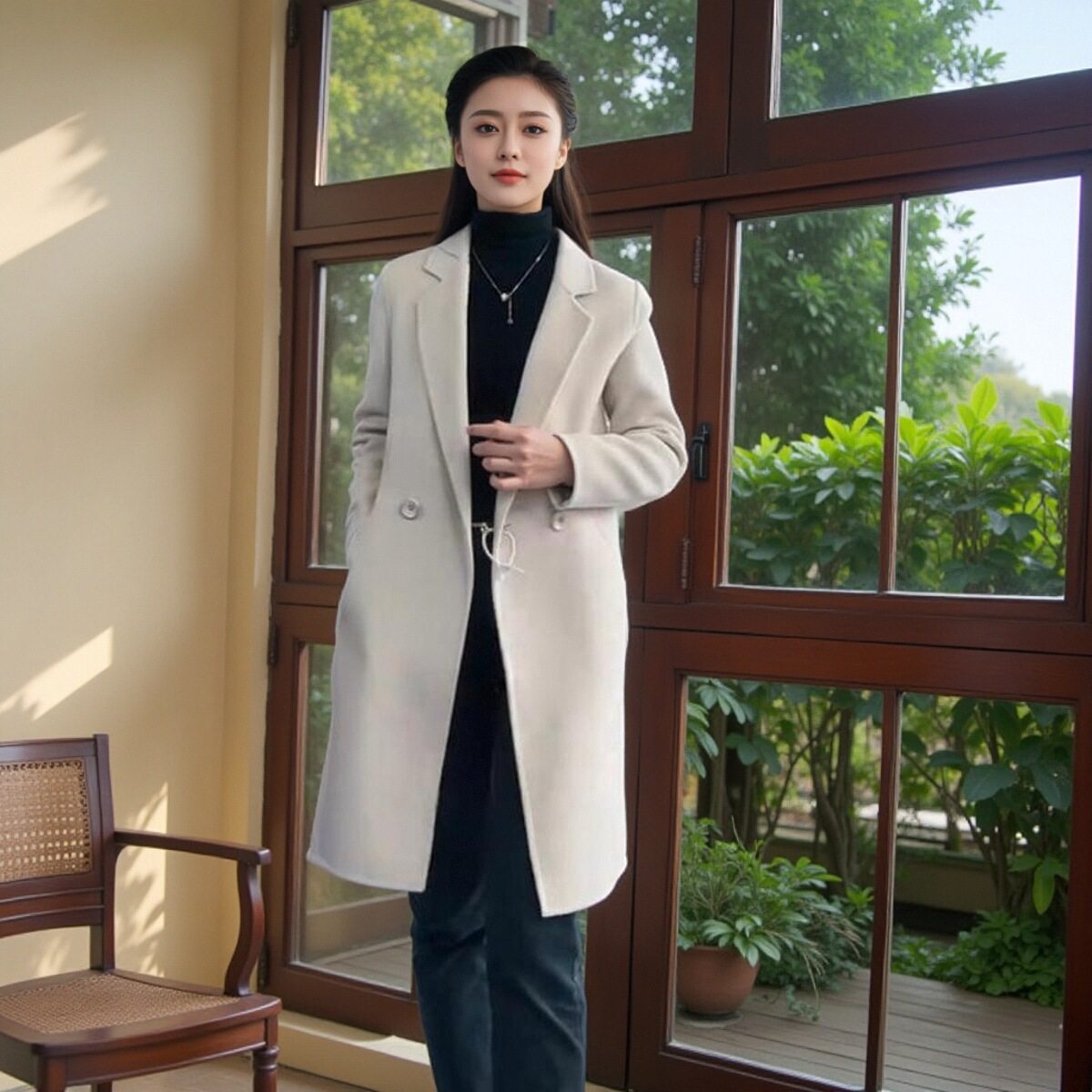 秋冬双面羊绒大衣女中长款2025新款西装领修身显瘦小个子羊毛外套