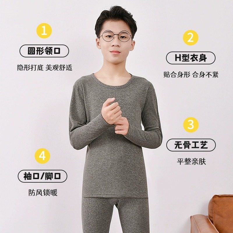 青少年保暖内衣套装羊毛蚕丝德绒冬季秋衣裤男大童初中高中生学生