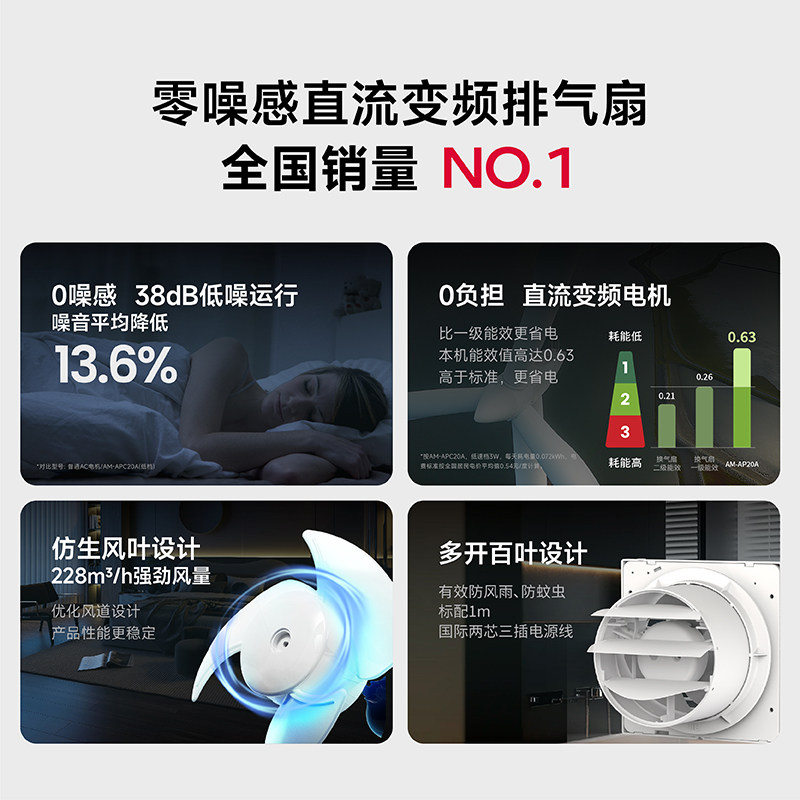 【金羚旗下】美胜轻音低噪排气扇家用浴室窗墙式零噪感换气扇