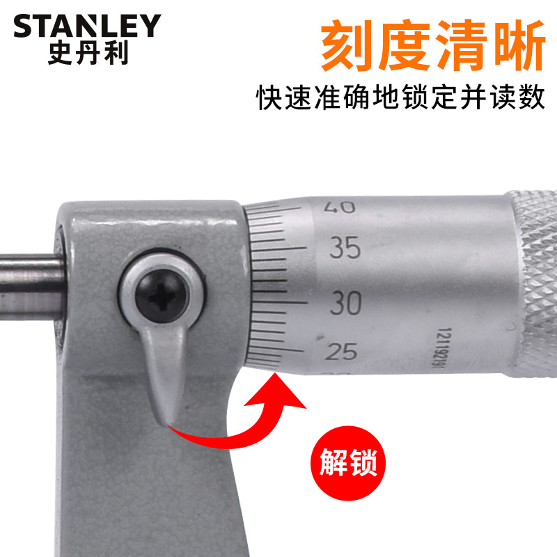 史丹利机械外径千分尺0-25mm 25-50mm 50-75mm螺旋测微卡尺高精度