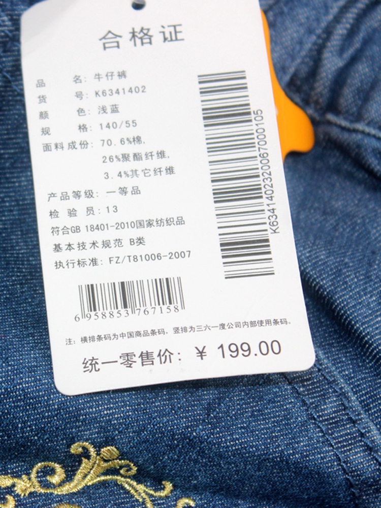 361度女生棉质长裤 蓝色6341402牛仔裤女童春秋休闲裤女孩