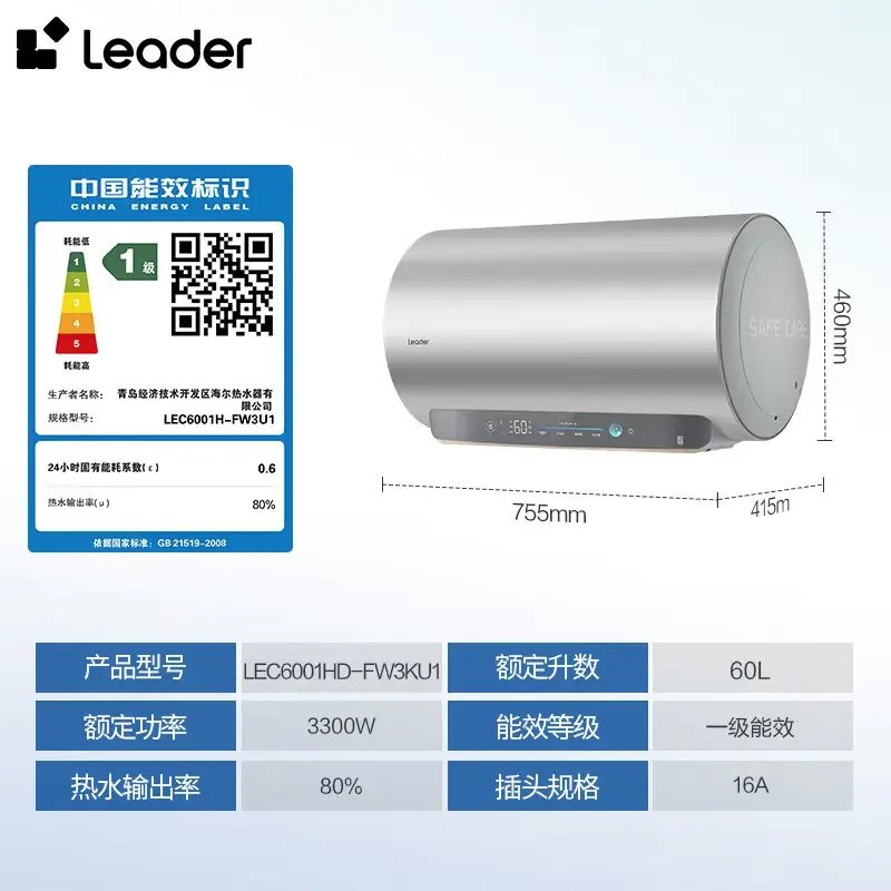 Haier/统帅 LEC6001H-FW3U1 60升一级电热水器活力洗镁棒免换家用