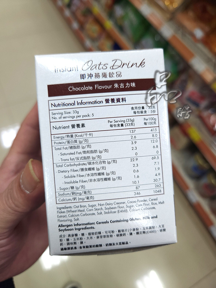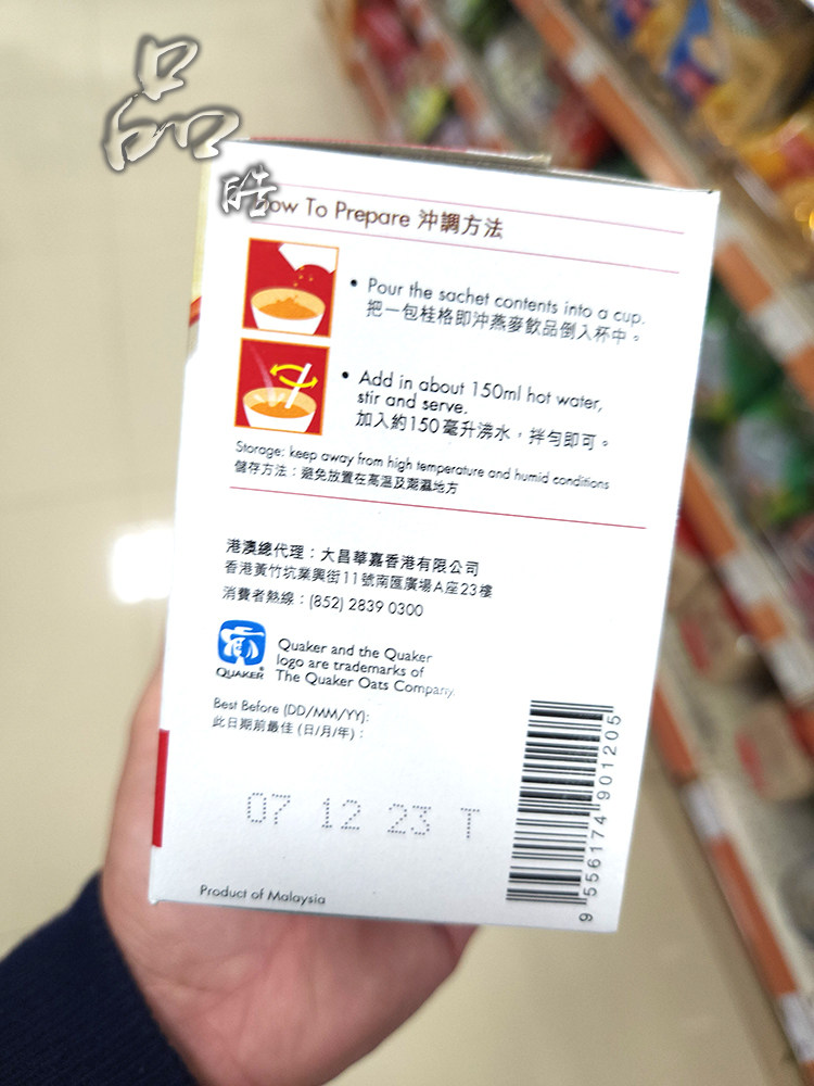 进口桂格即冲朱古力味燕麦饮品