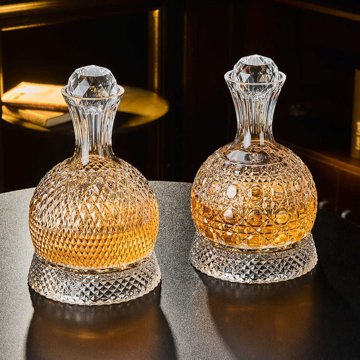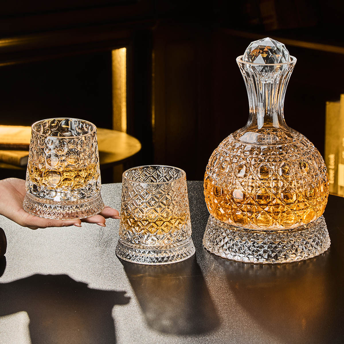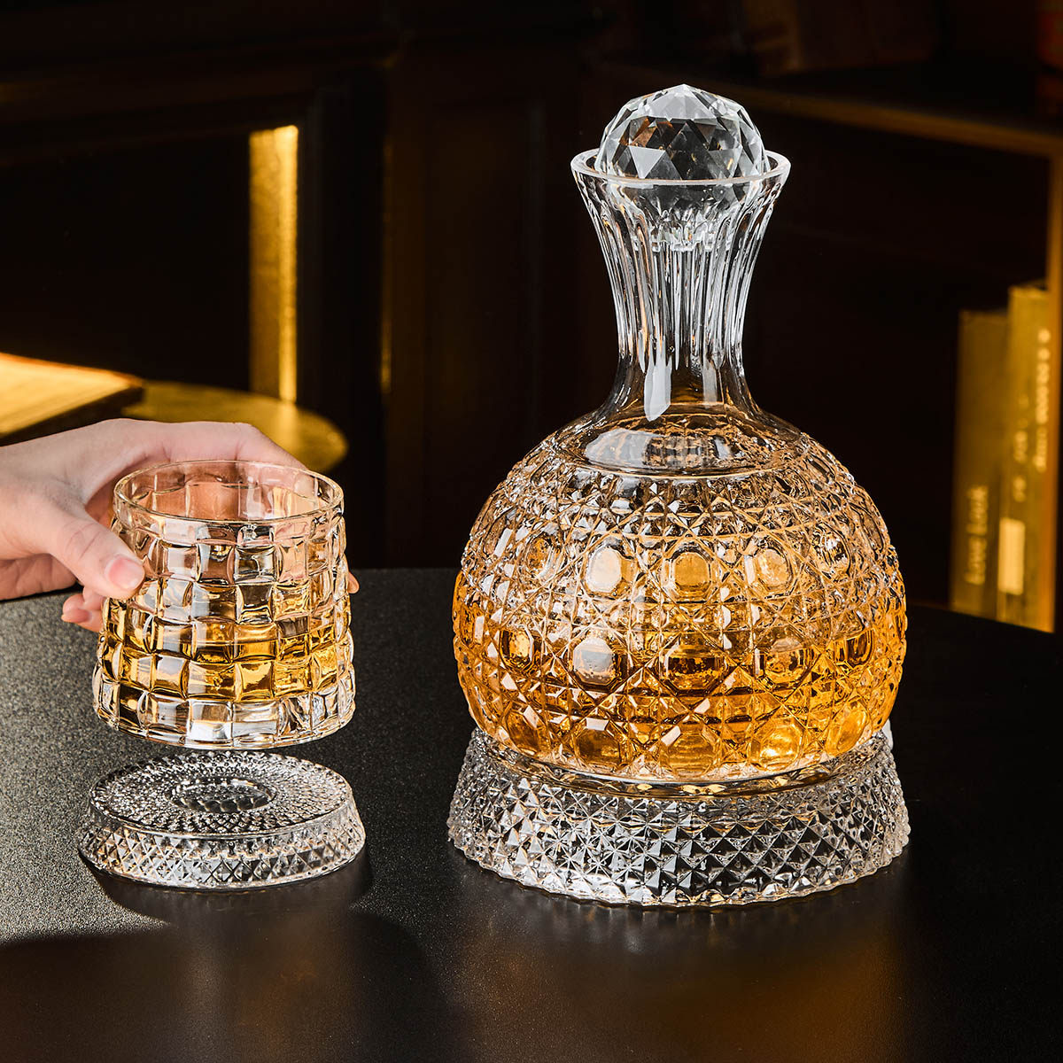 网红旋转威士忌酒杯醒酒器玻璃家用古典洋酒具套装高档酒柜摆件