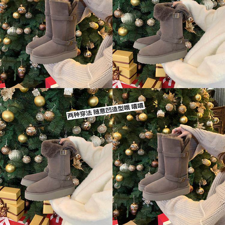【柒柒粉丝专属】零下初雪~厚底中高筒羊毛毛短靴女雪地靴长靴