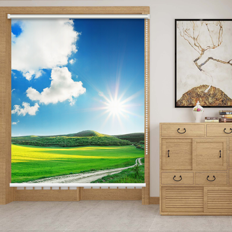 风景画全遮光窗帘卷帘卷拉式客厅免打孔电动伸缩遮阳帘浴厨房防风