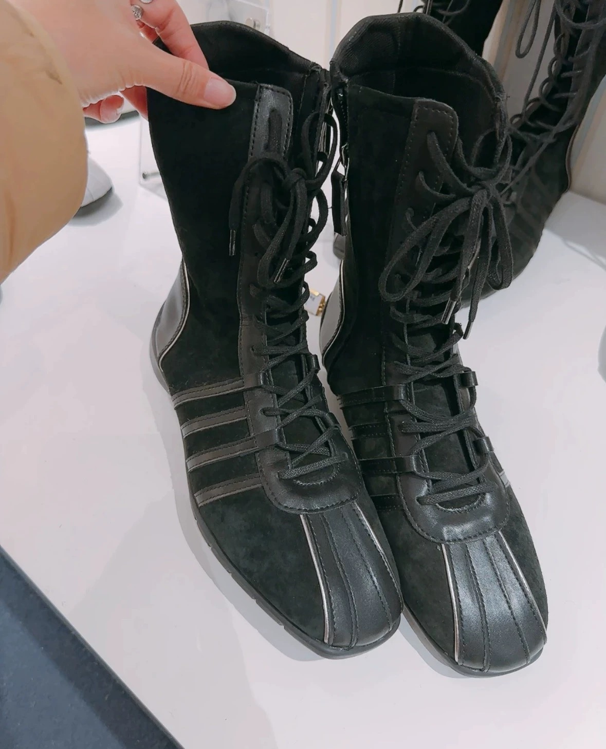 现货*rockfish 黄礼志itzy同款复古运动风绑带芭蕾鞋短靴马丁靴女