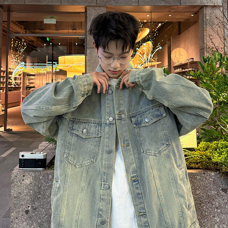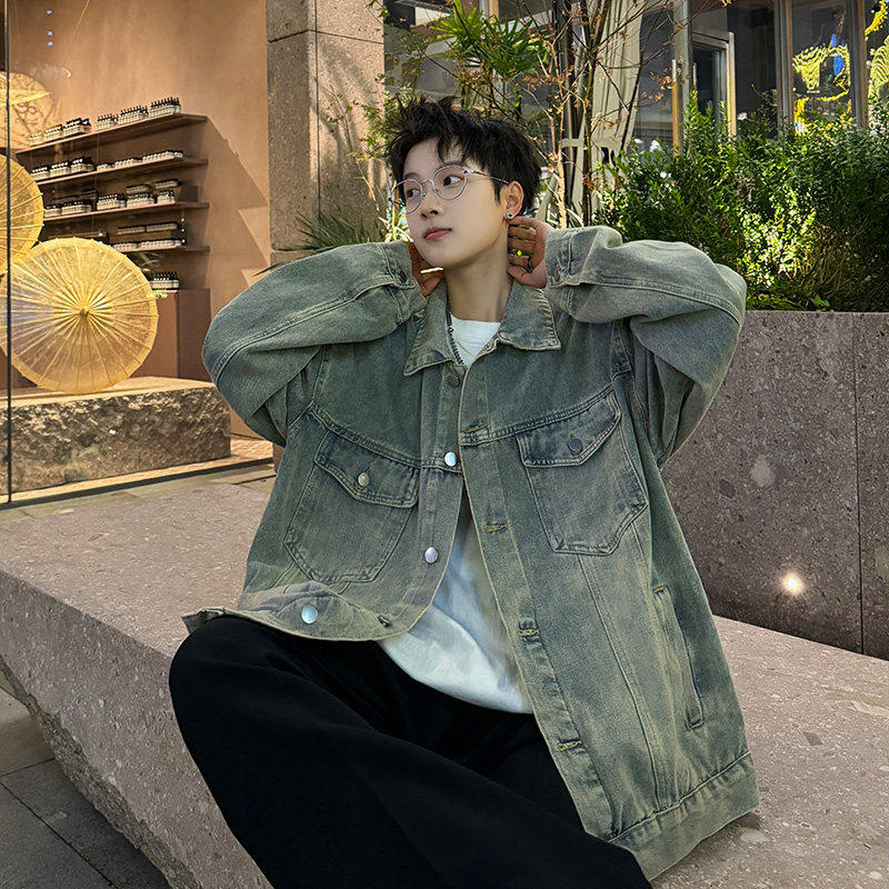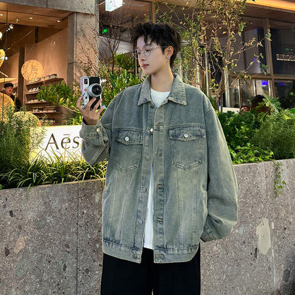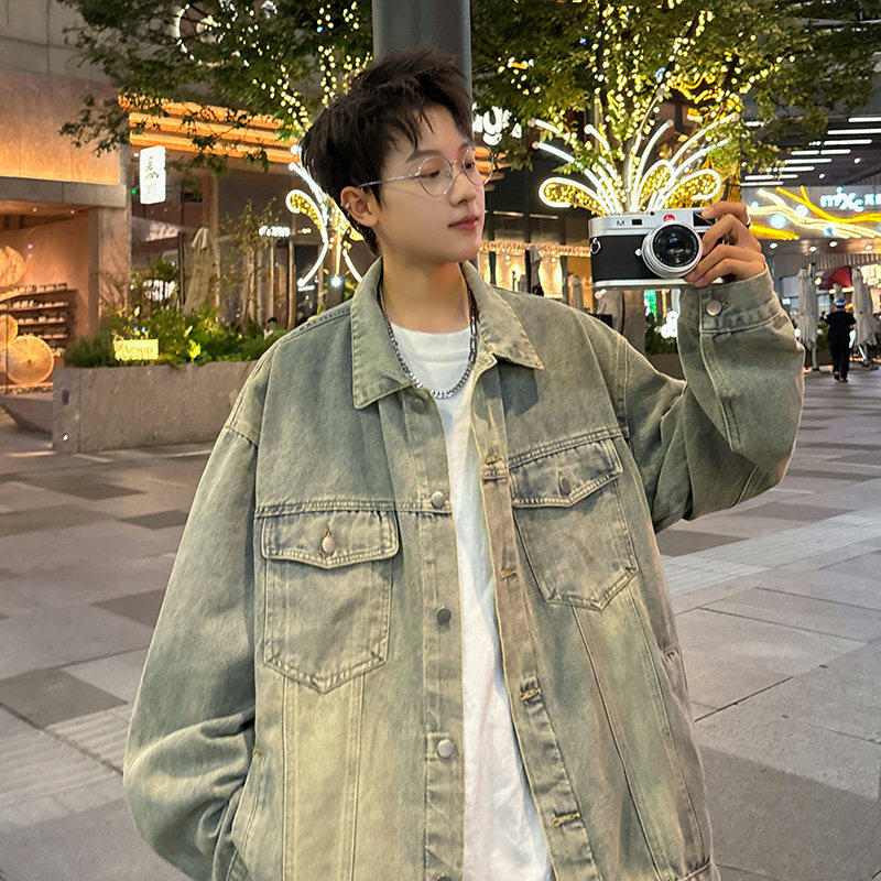 日系复古水洗牛仔外套男春秋季痞帅宽松夹克男生潮流百搭褂子上衣