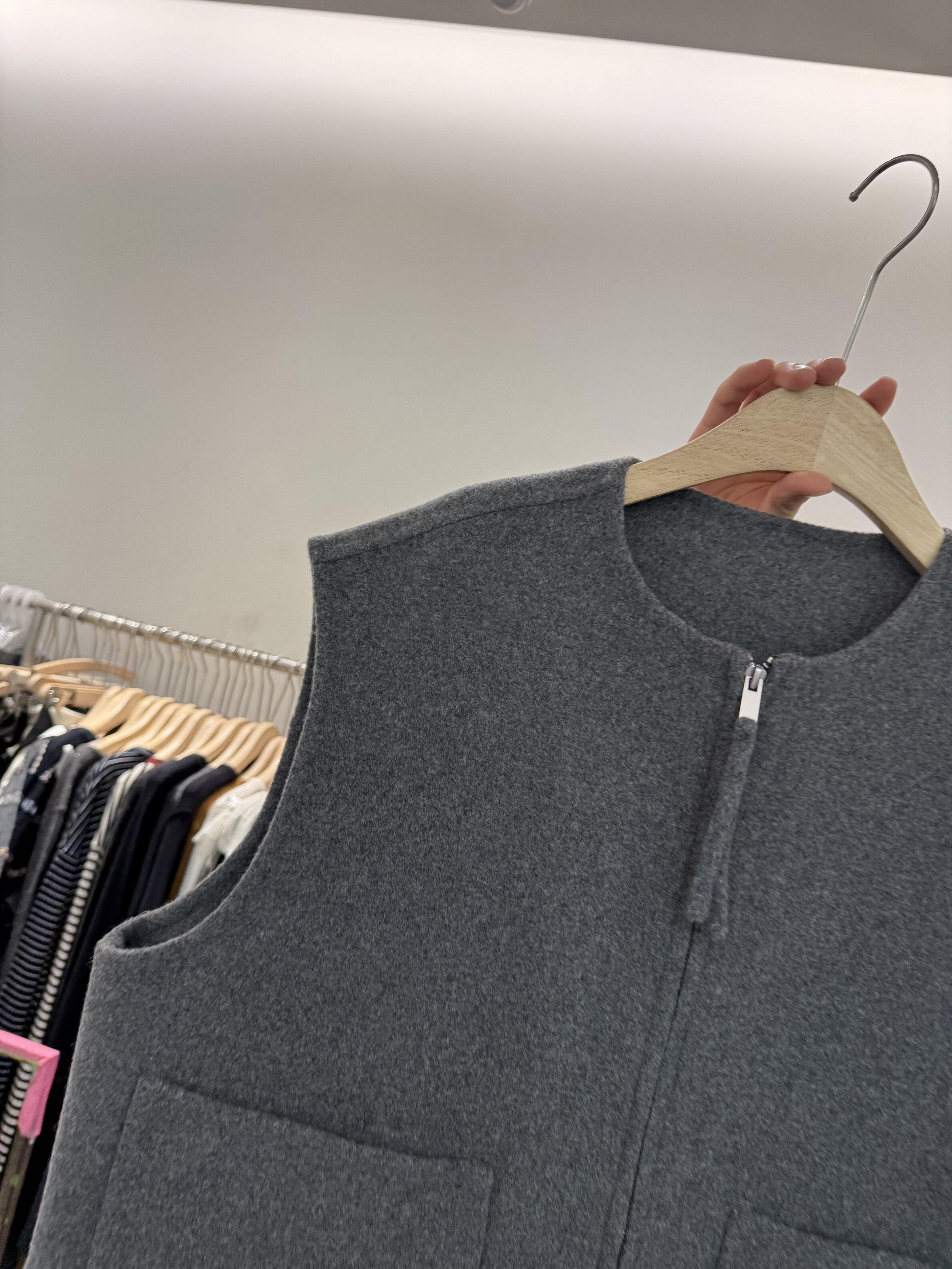 欧货B005时尚高级感圆领拉链双面羊绒山羊绒马甲背心坎肩羊毛外套