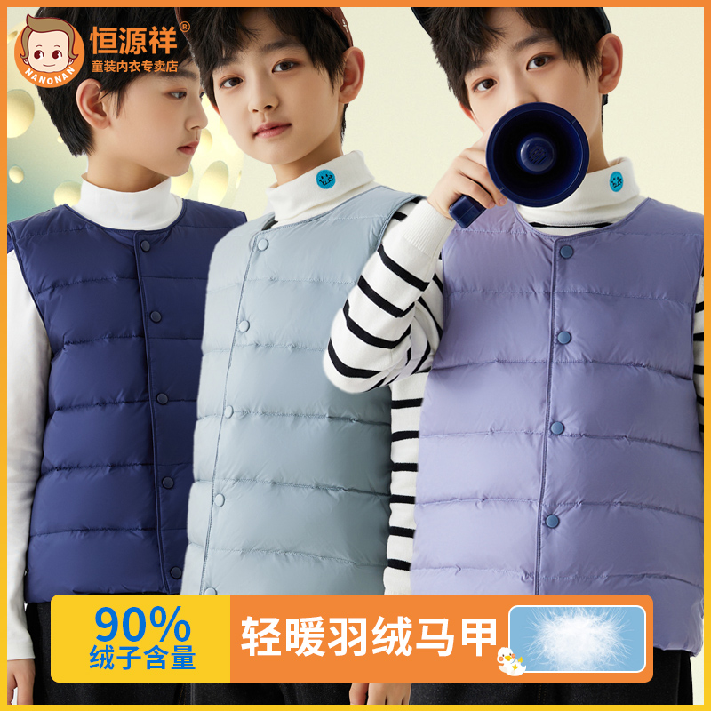 恒源祥儿童羽绒内胆男童中大童秋冬内搭保暖内穿羽绒马甲背心外穿