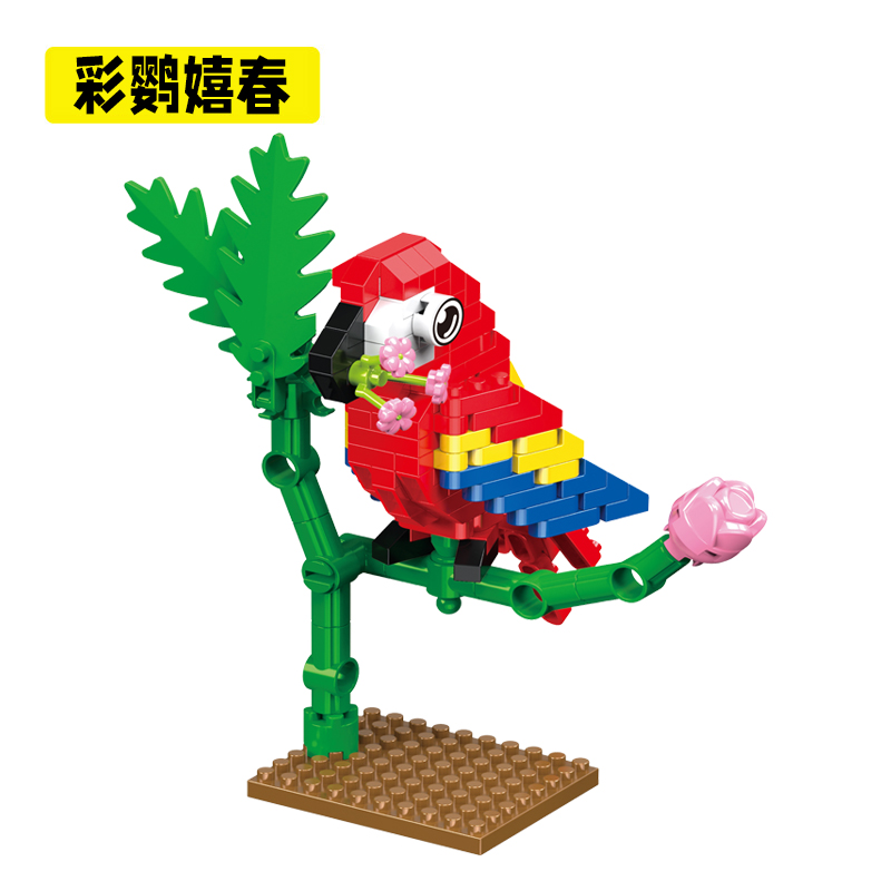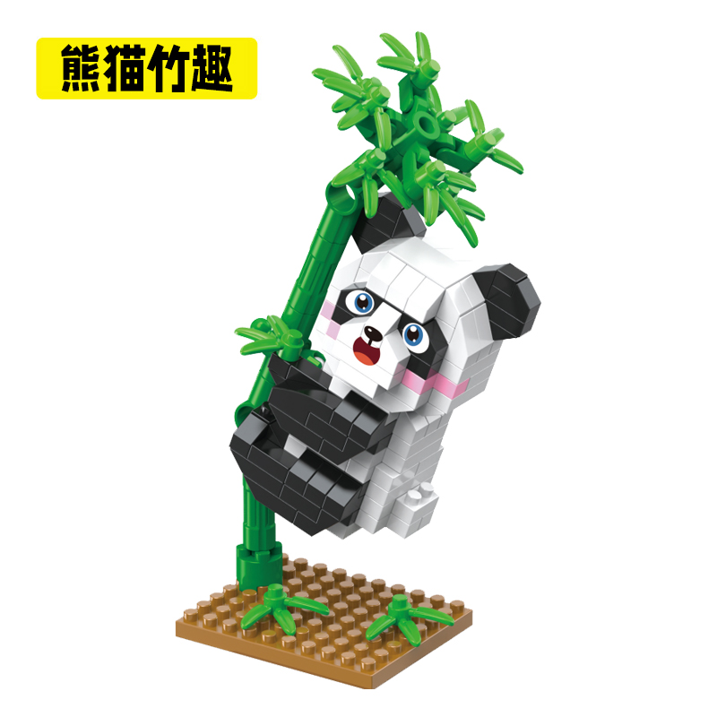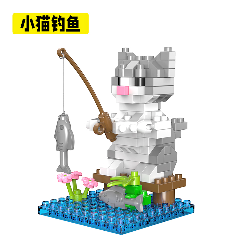 积客微颗粒积木趣萌动物系列小猫钓鱼熊猫小狗趣味场景拼搭积木