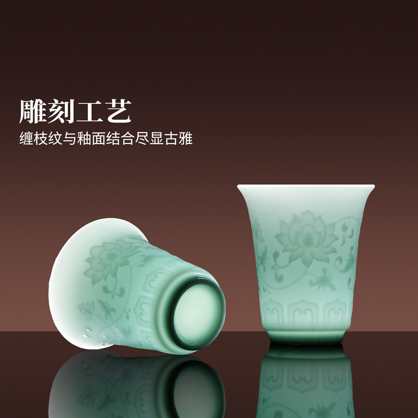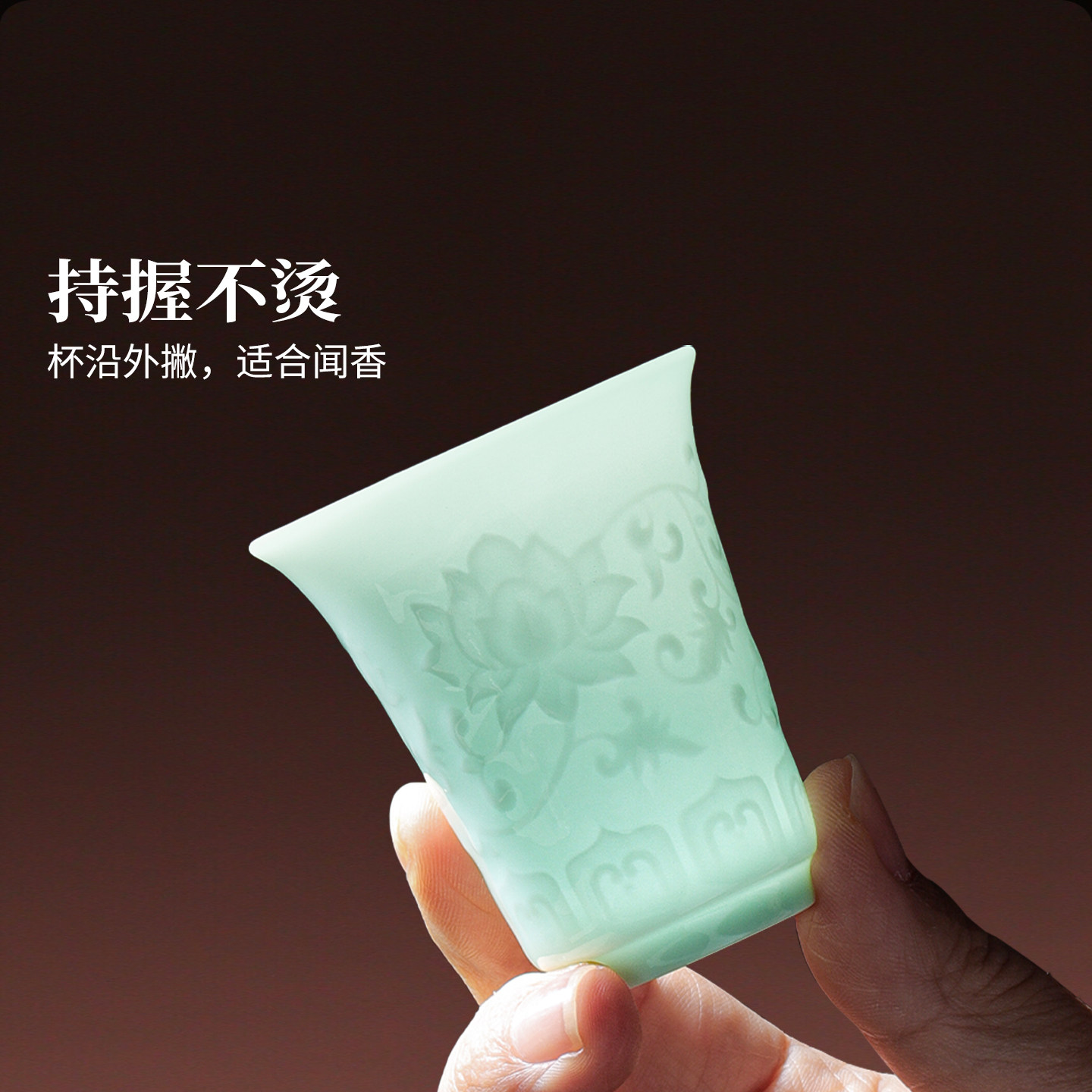 景德镇陶瓷影青白瓷浮雕缠枝莲小茶杯主人杯喝茶个人专用闻香杯