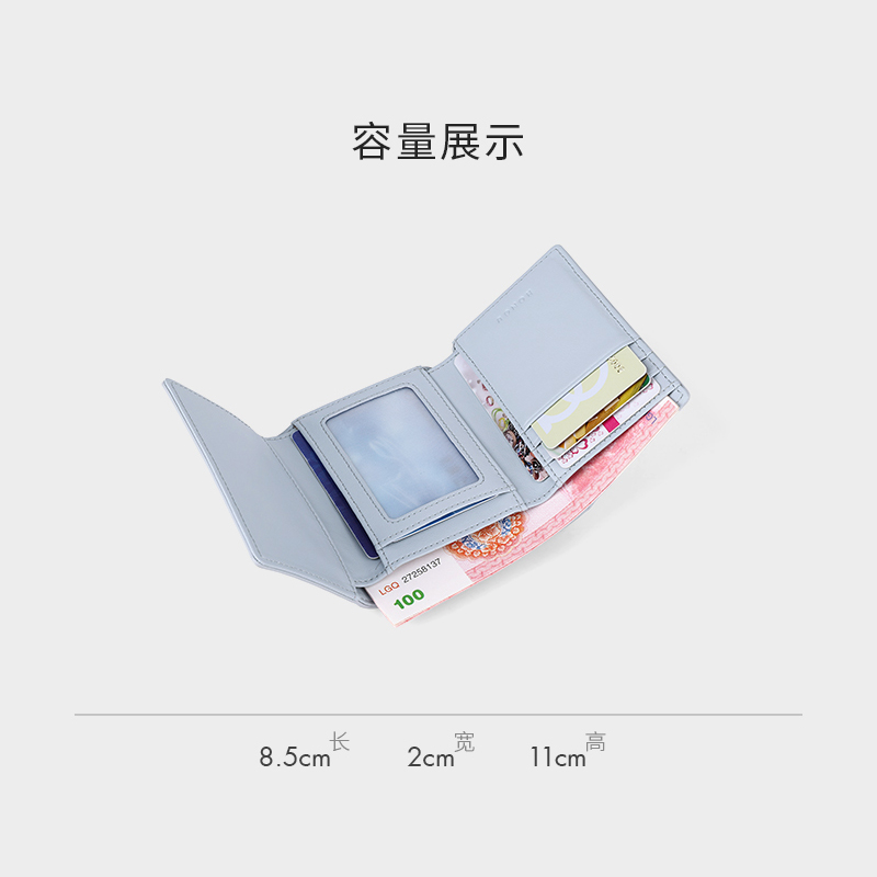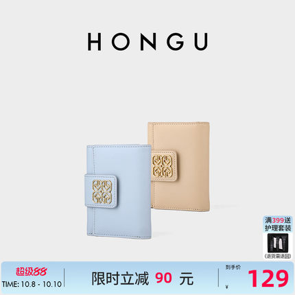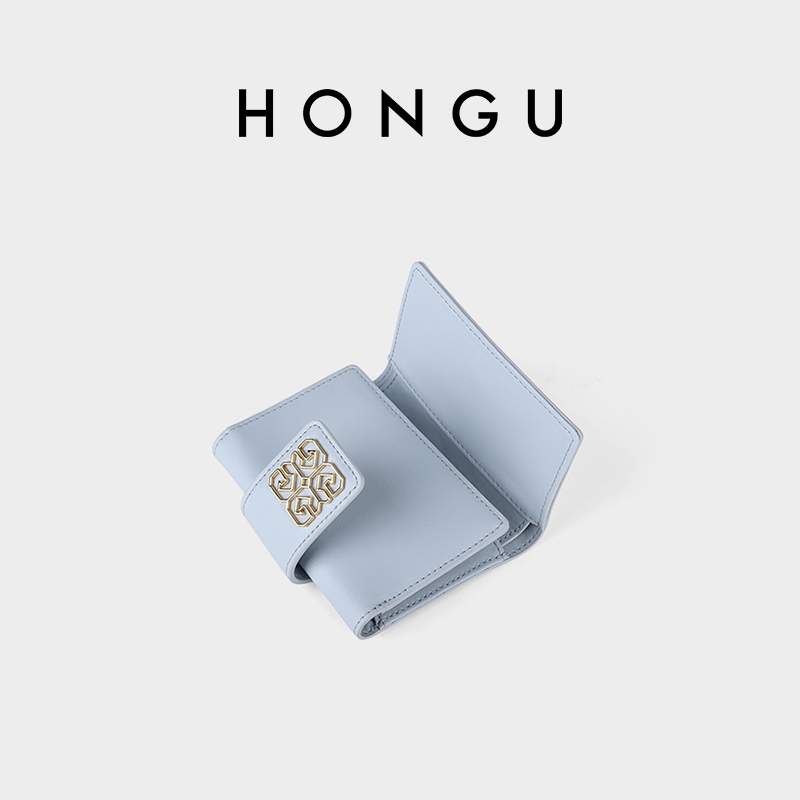 HONGU红谷真皮女士三折钱包