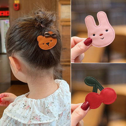 儿童发夹可爱兔子小熊樱桃bb夹皮质发卡小女童刘海后脑勺碎发头饰