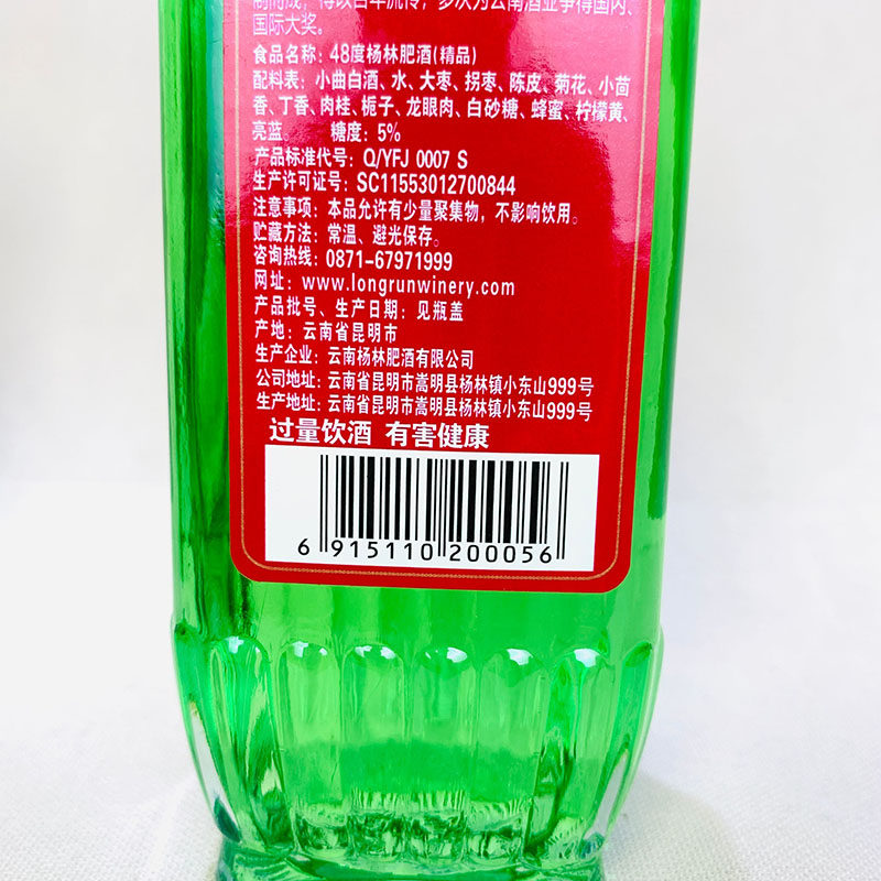 云南特产酒绿酒杨林肥酒精品清香型 400mLX6瓶48度正品包邮