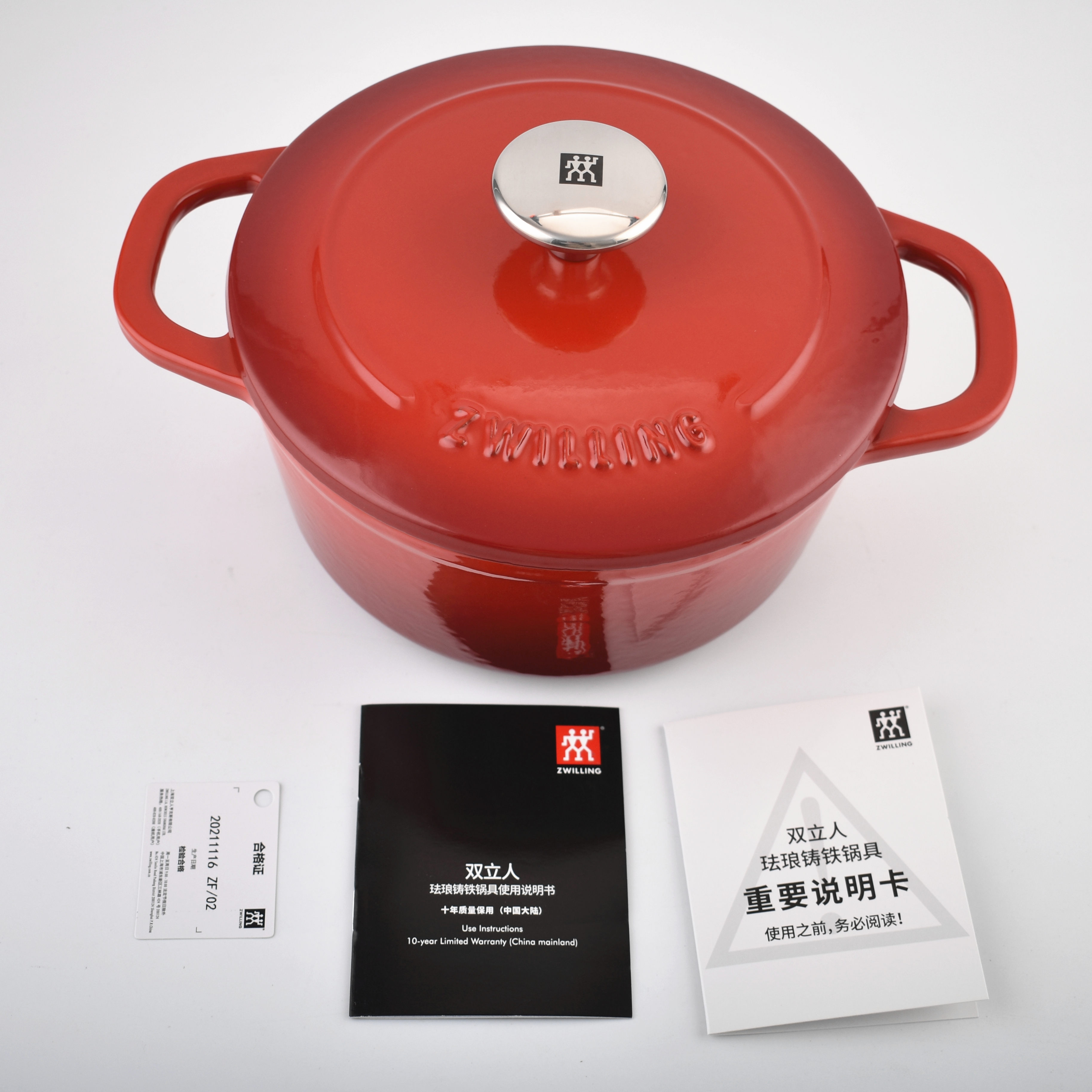 德国双立人20cm铸铁锅 樱桃红珐琅铸铁锅锅具炖锅汤锅
