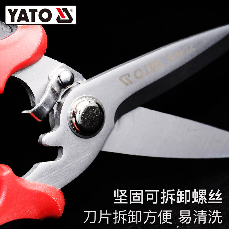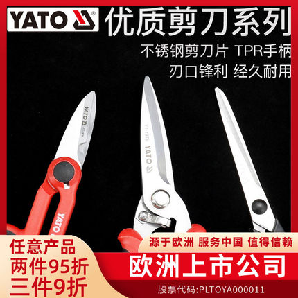 YATO裁剪剪刀工业强力剪子大号海鲜剪剪皮带工具家用裁缝裁布剪刀