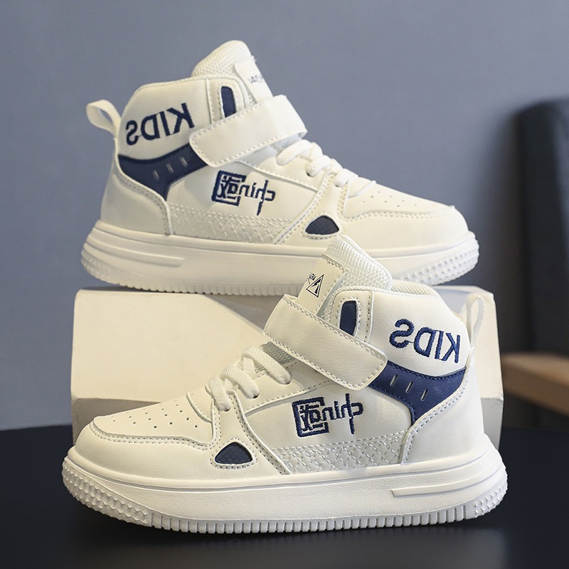 男童鞋子板鞋2025新款冬季高帮白色运动鞋皮面防水运动小白鞋