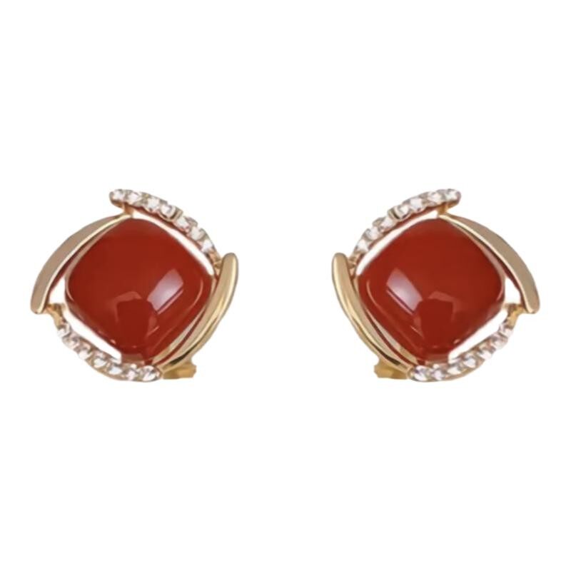 四方来财高级感红色耳钉女