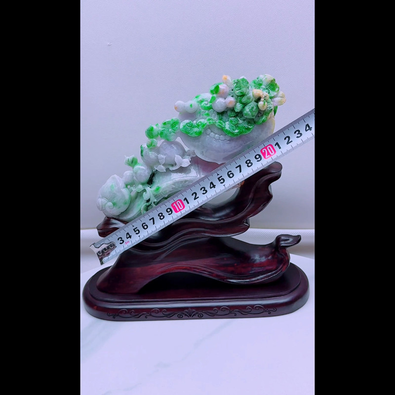 缅甸天然A货玉石翡翠孤品 精雕老坑三彩飘绿顺心如意招财摆件