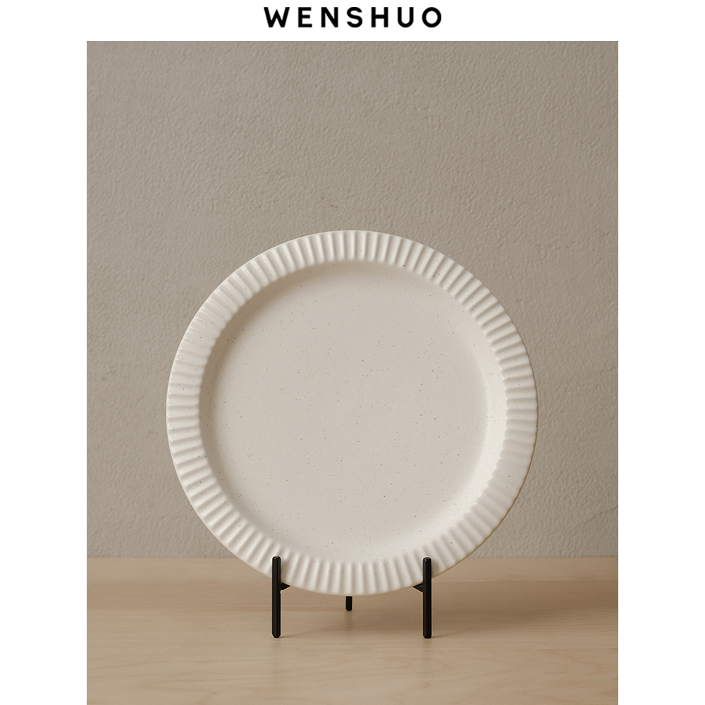 WENSHUO 复古黑白圆盘哑光高级感8.5英寸简约牛排盘菜盘早餐平盘
