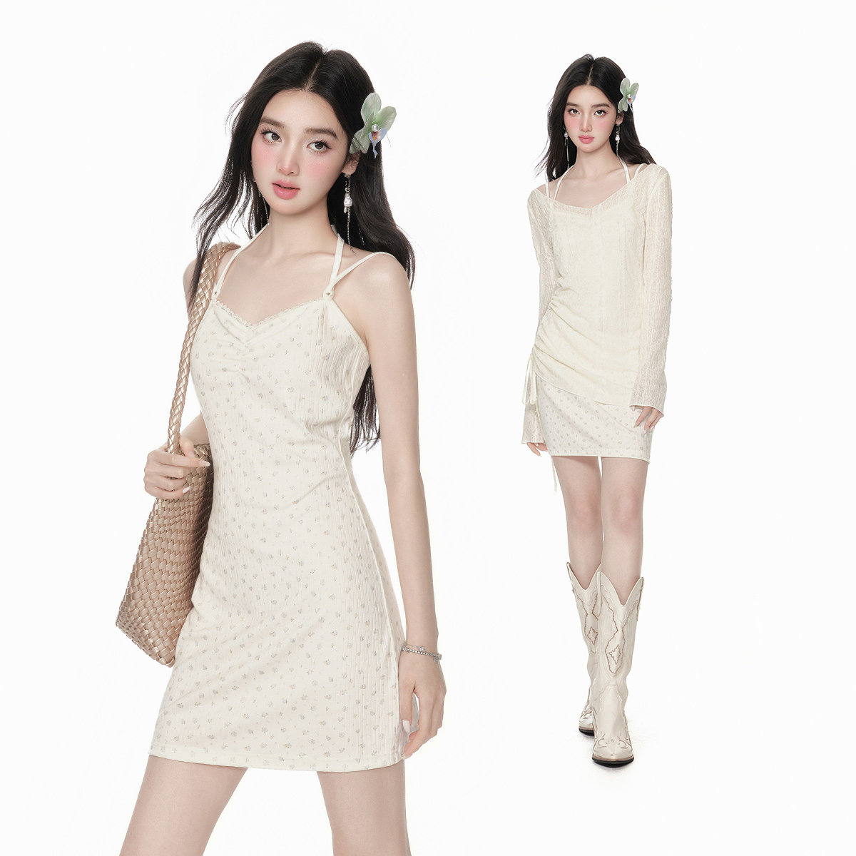 EPTISON时尚套装女2025夏新款宽松v领罩衫上衣吊带连衣裙两件套