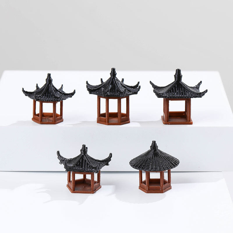 微景观假山水陆缸鱼缸造景小摆件中式古建筑模型庭院书房凉亭
