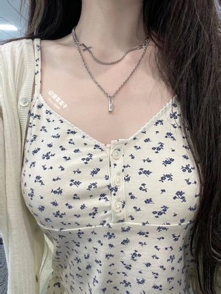 Brandy girl202.夏款BM官网同款少女碎花纯棉纽扣小吊带背心内搭