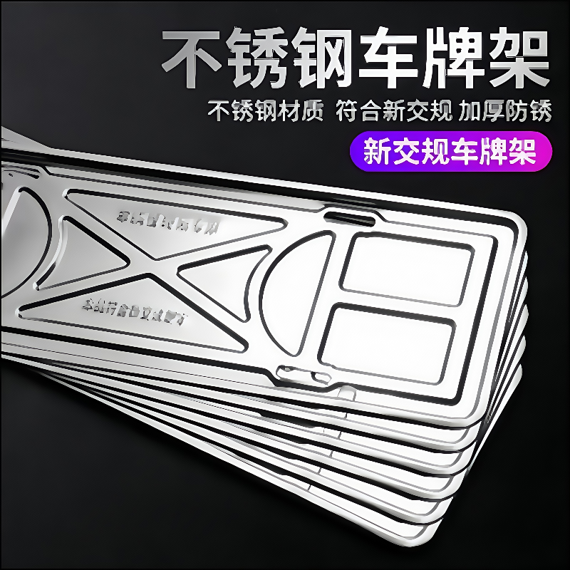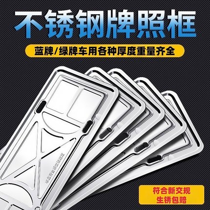 新交规蓝牌汽油车新能源汽车车牌边框不锈钢牌照架托盘绿牌大货车