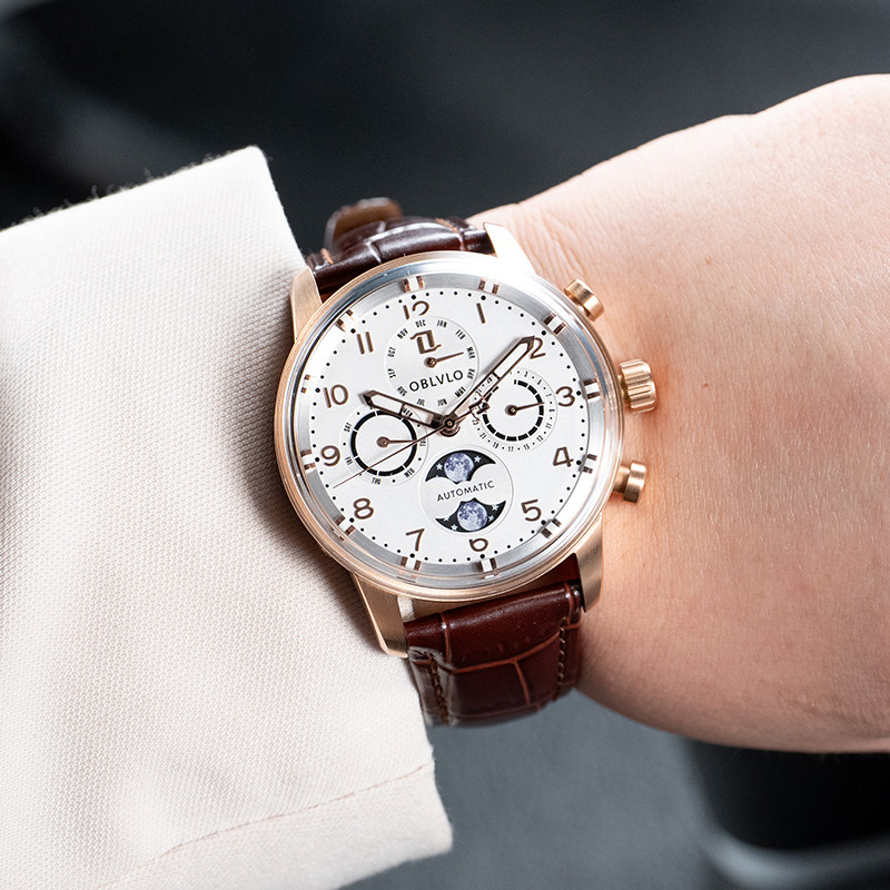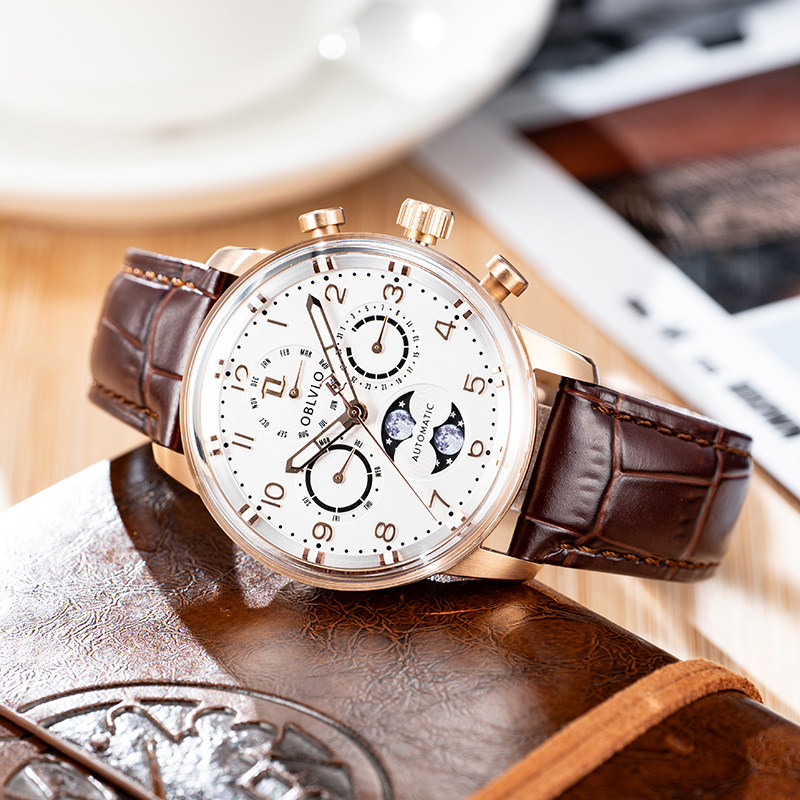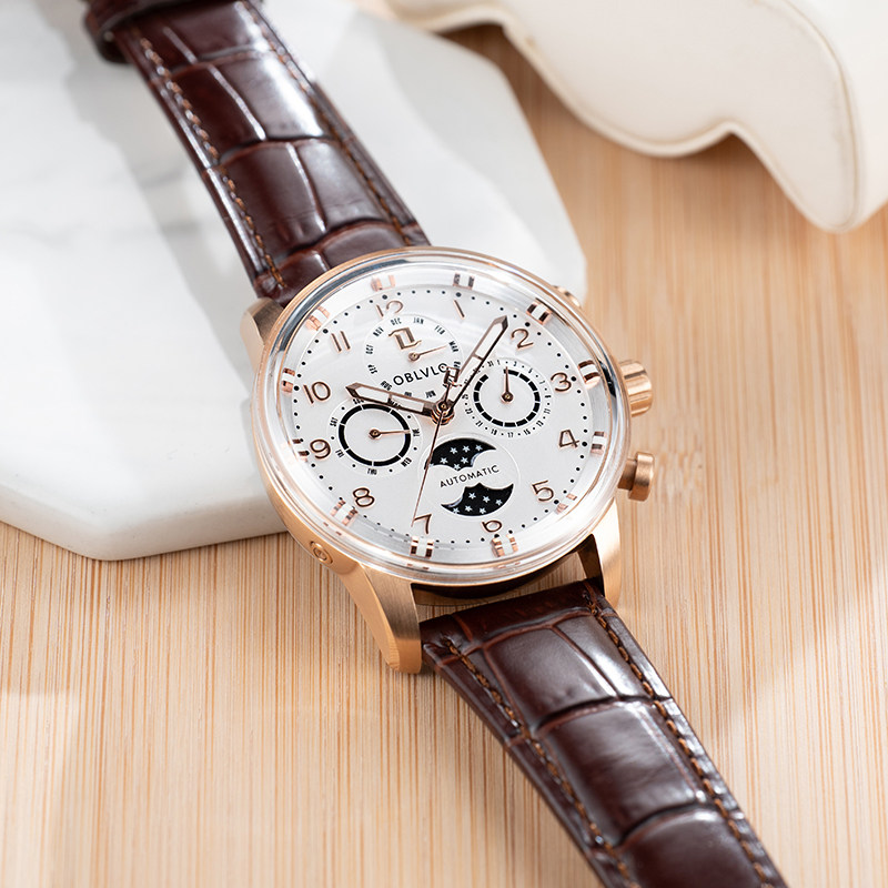 OBLVLO欧宝罗超级复杂系列月相圆缺机械表男士送礼商务腕表万年历