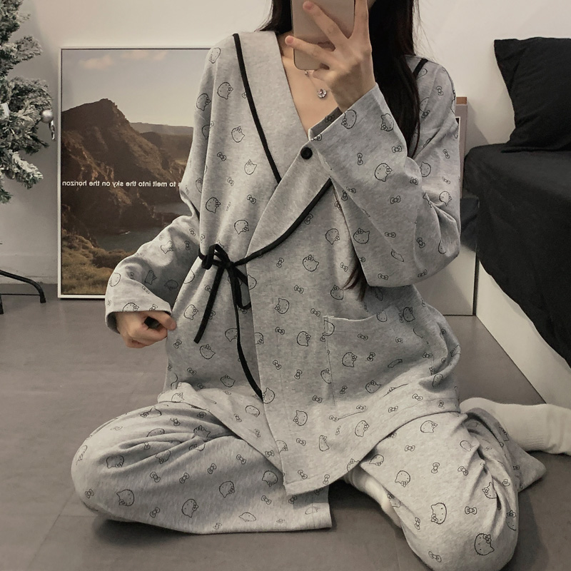 和服月子服春秋季纯棉全棉吸汗9月份产后大码孕妇睡衣哺乳喂奶10