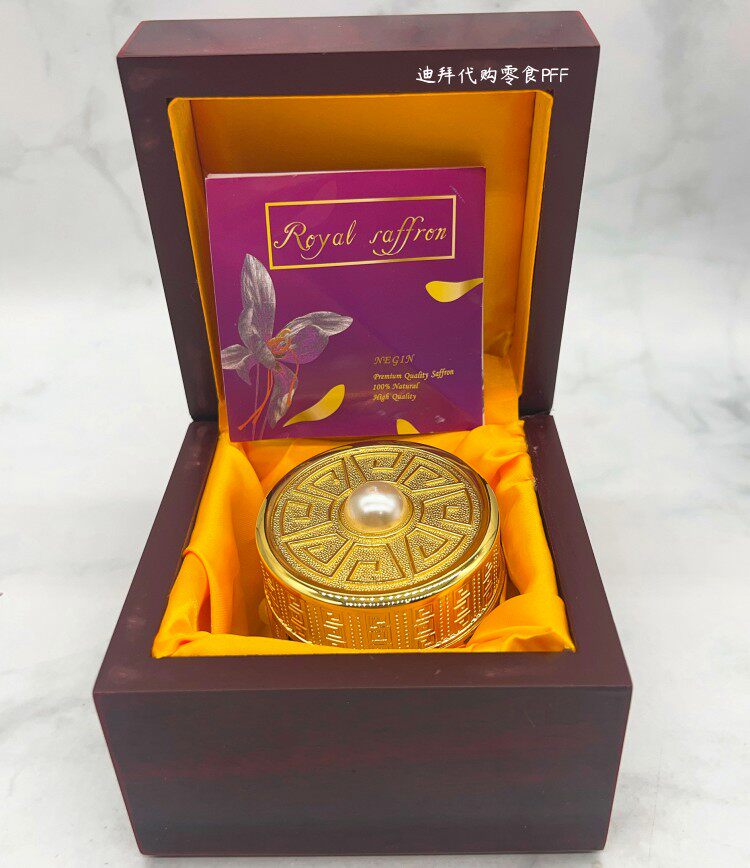 现货 迪拜代购Royal伊朗特级藏红花5G高级礼盒木盒装珍珠金色瓶子