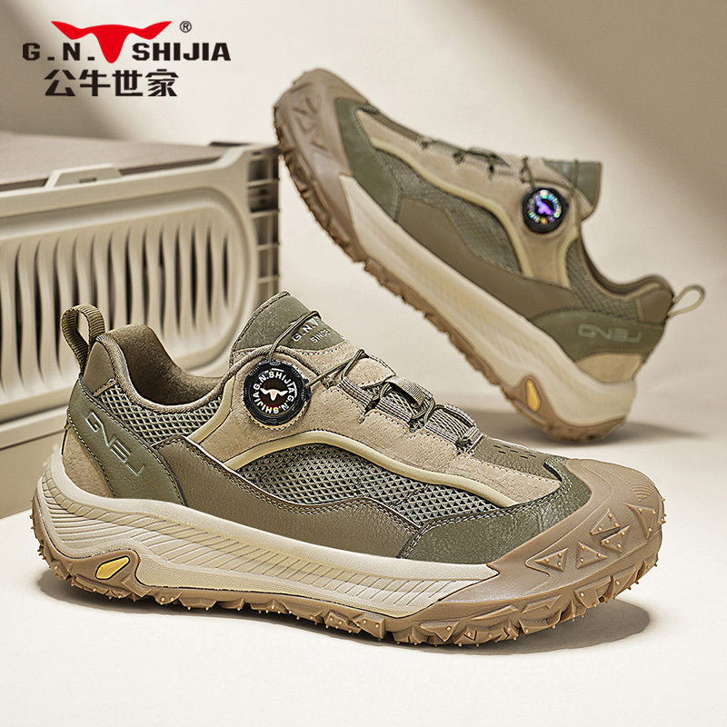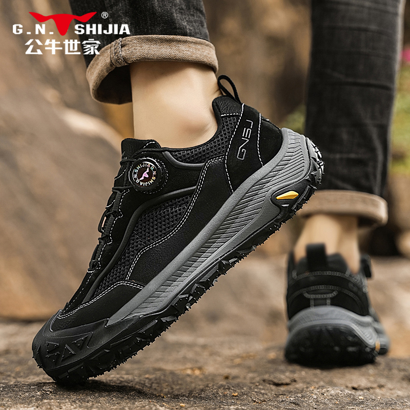 公牛世家户外男鞋夏季厚底防滑透气网面休闲运动鞋男士登山徒步鞋