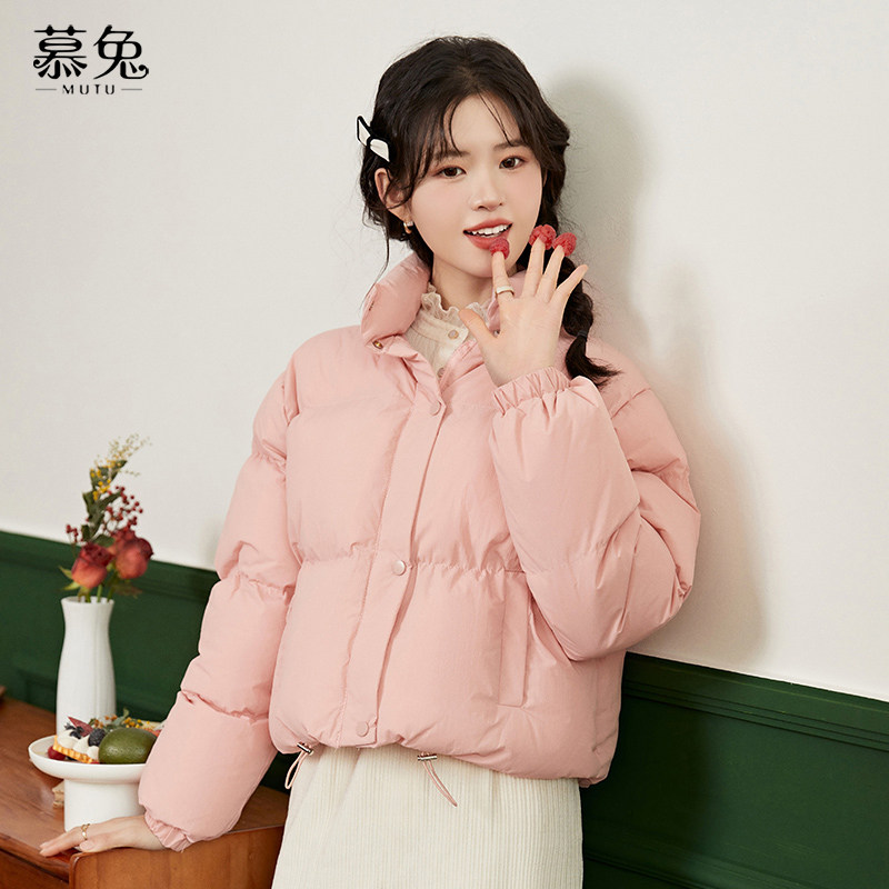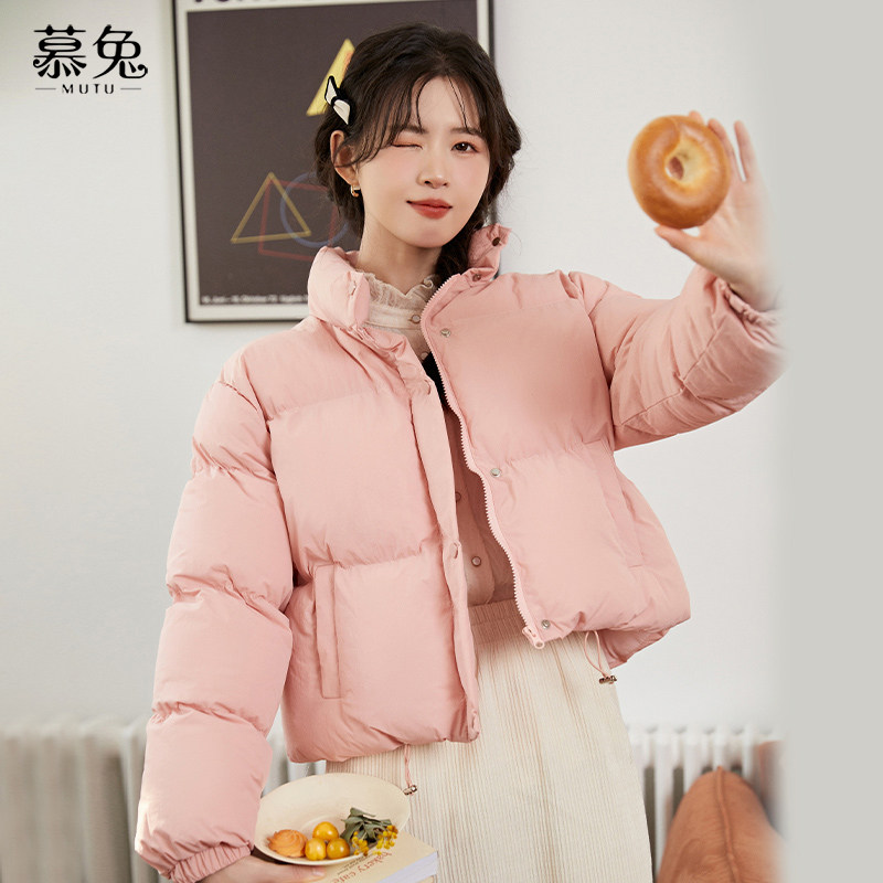 慕兔小个子短款面包棉服女冬季2025新款立领加厚夹棉粉色棉衣外套