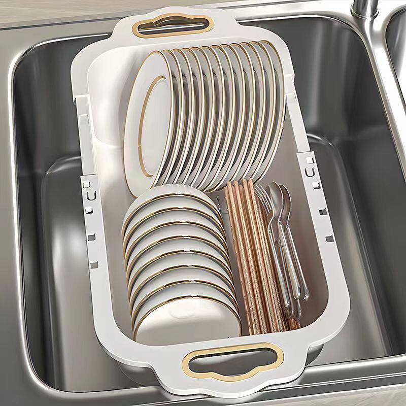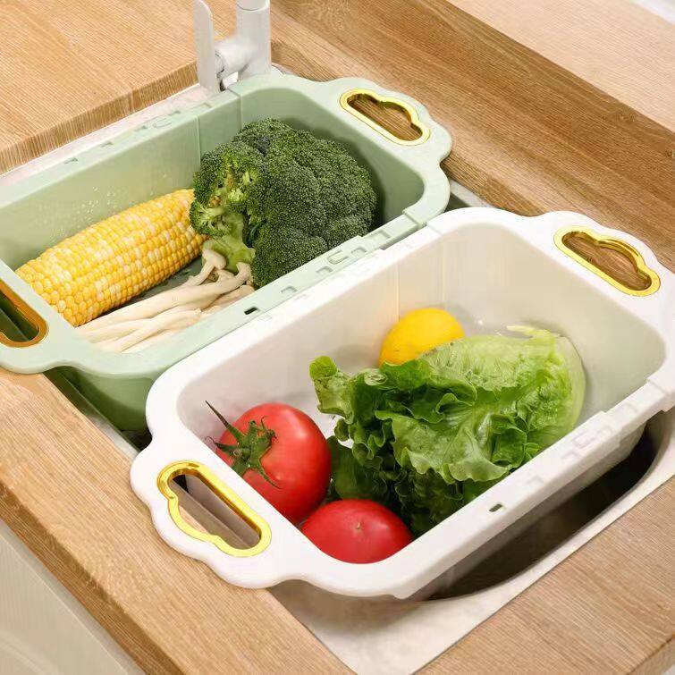 双层可伸缩沥水篮厨房伸缩洗菜盆家用客厅水果盘抽拉式水槽沥水篮