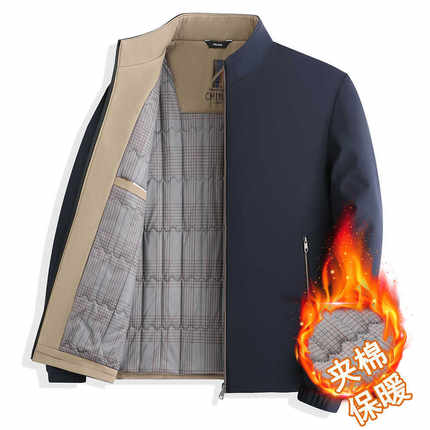 秋冬中年男士立领夹棉夹克爸爸装宽松大码外套中老年加厚保暖棉衣