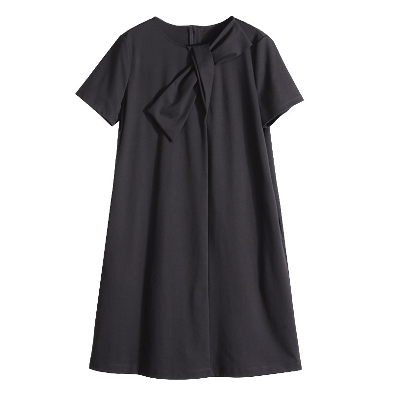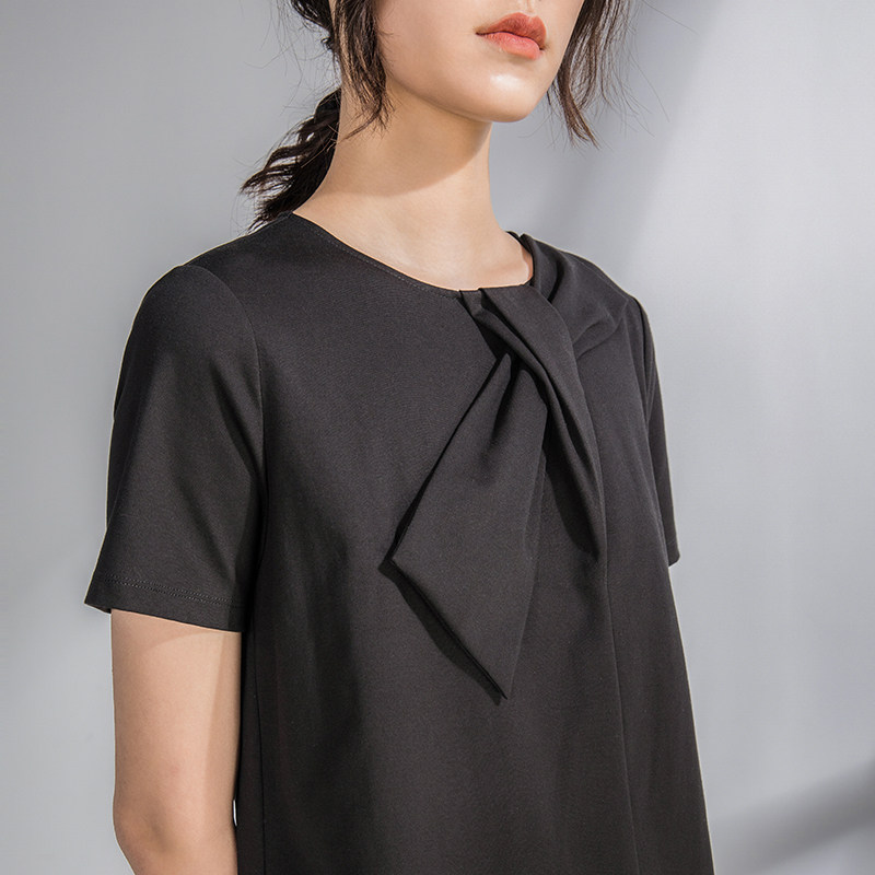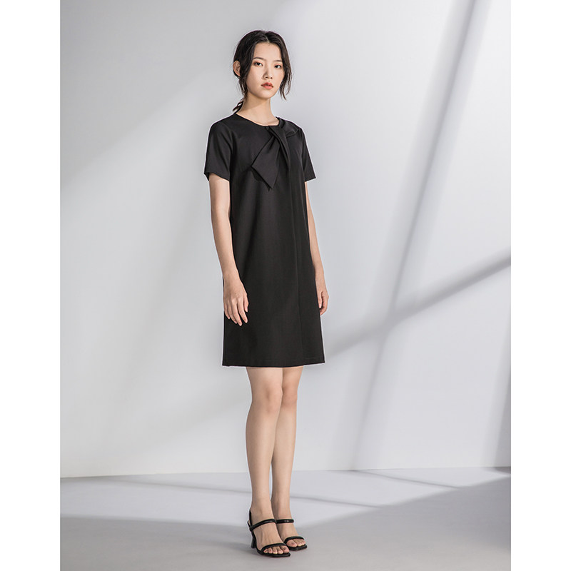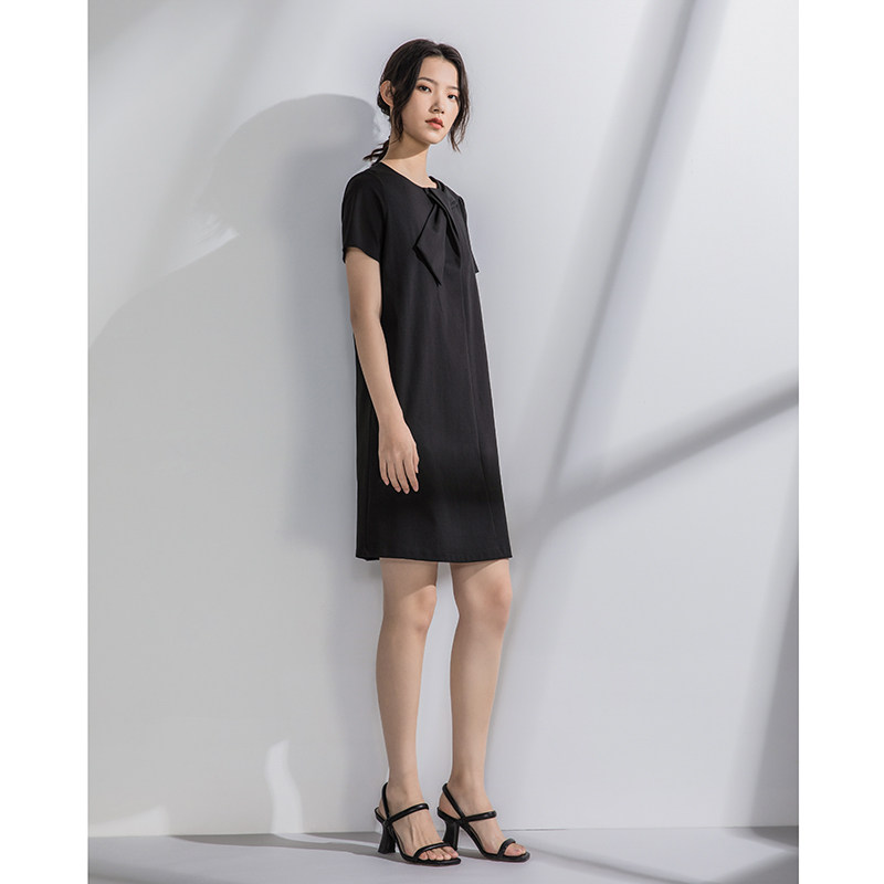 Yifini/易菲直筒黑色短袖连衣裙女夏装新款优雅气质连衣裙