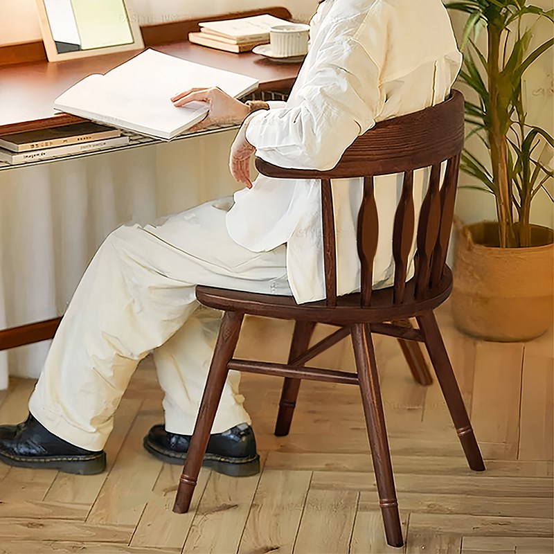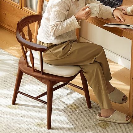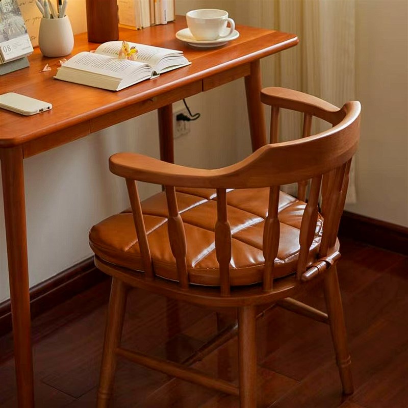 中古风实木餐椅侘寂复古书桌椅子靠背扶手圈椅主人茶软胡桃餐桌椅