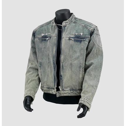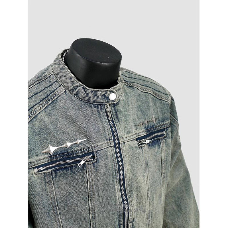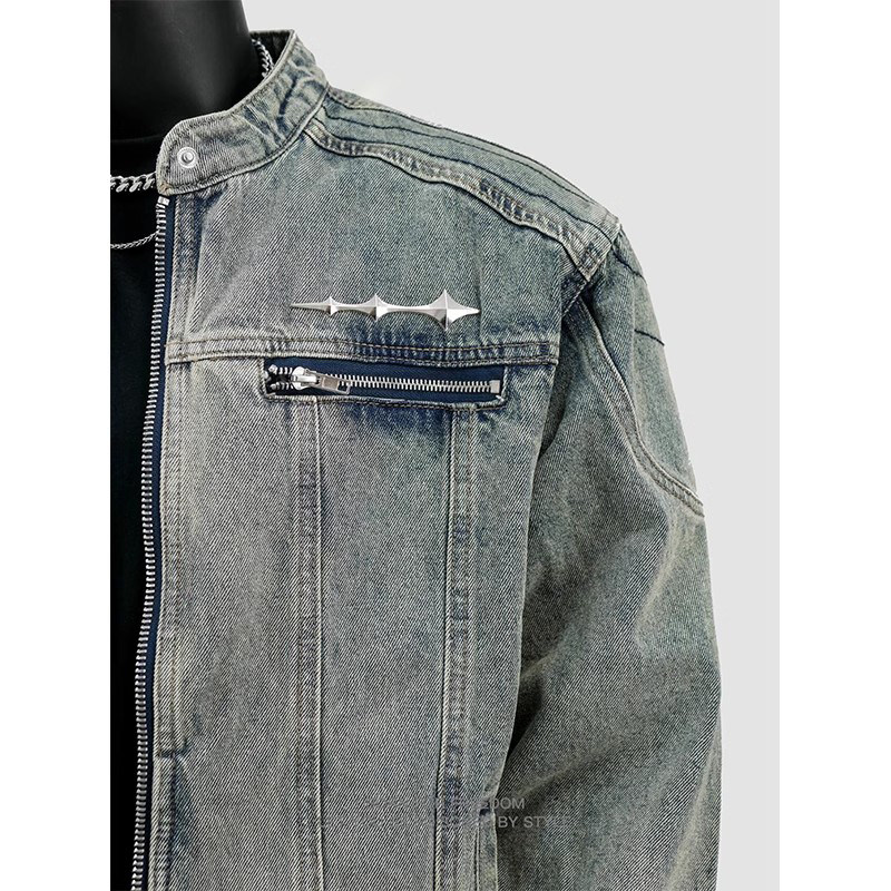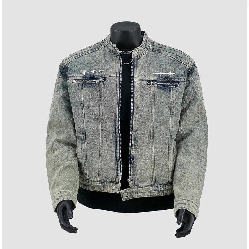 cleanfit短款垫肩男生秋季牛仔外套美式高街立领牛仔褂哈灵顿夹克