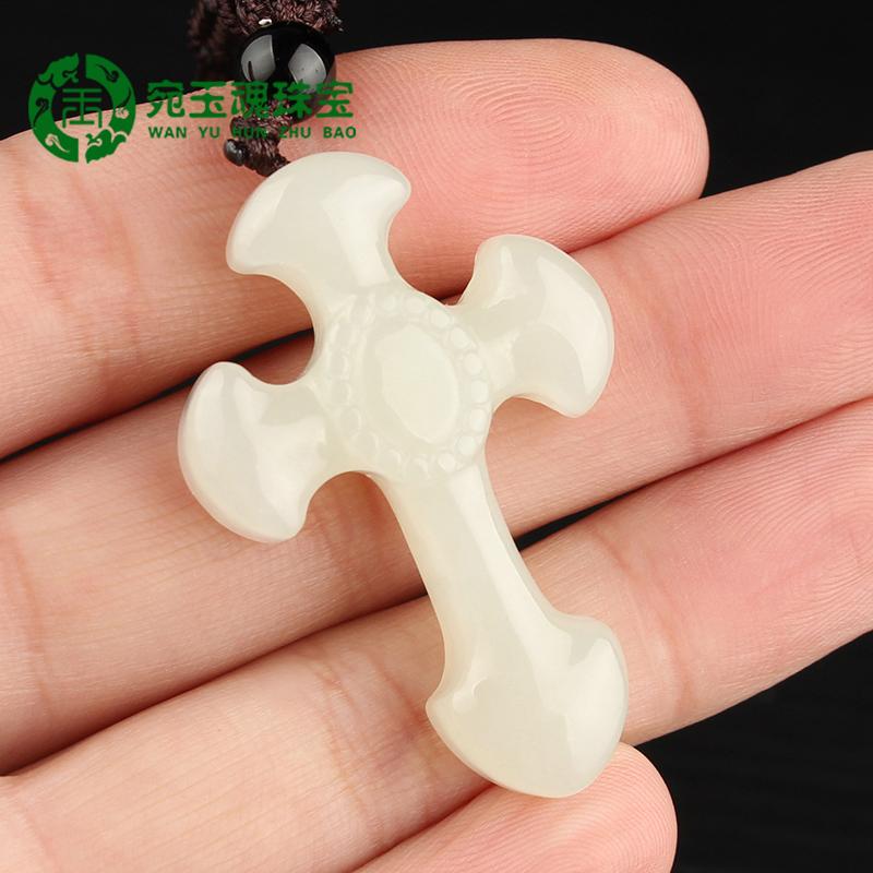 和田玉十字架吊坠男女士款玉石珠宝牌佩挂件项链玉坠情侣首饰礼物