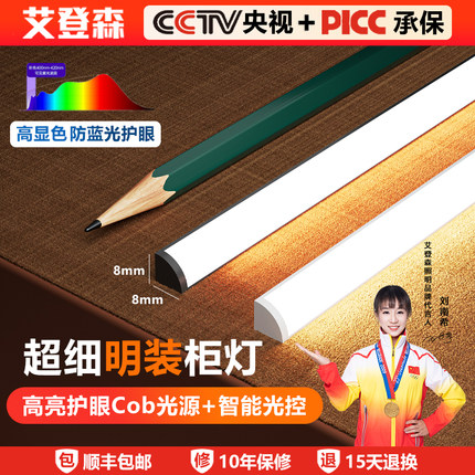 免开槽线条灯明装三角橱柜层板灯条插电鞋柜衣柜酒柜感应柜子灯带