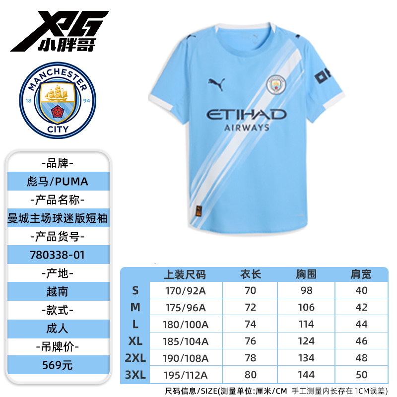 小胖哥XPG彪马曼城25-26主场球迷版球衣比赛训练短袖足球服成人男