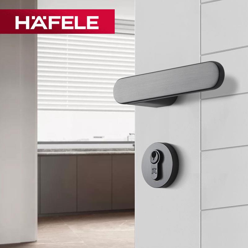 德国海福乐HAFELE现代简约生态房门锁具黑色椭圆亚光静音门卧室锁