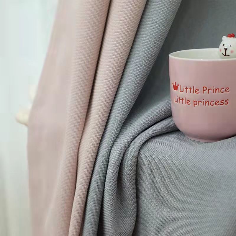 2025新款现代简约遮光棉麻纯色拼接窗帘卧室飘窗儿童房少女心短帘
