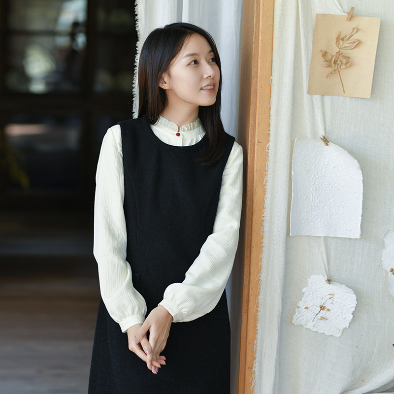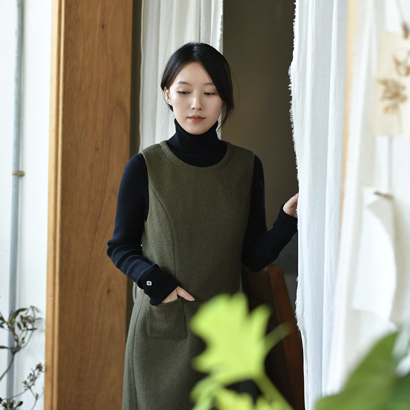 24QDC-197【空枝】前世今生复古文艺简约有型圆领毛呢背心裙