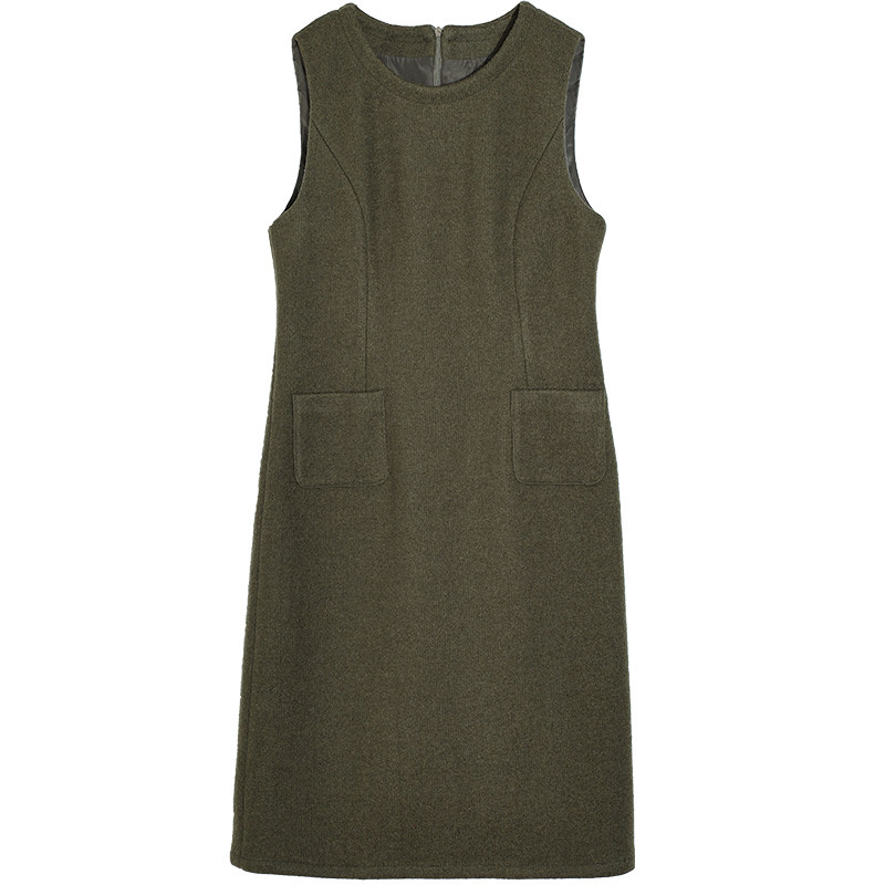简约文艺修身毛呢背心裙