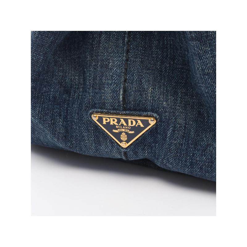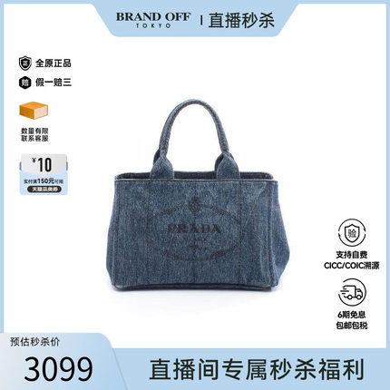 中古Prada普拉达女包B级9新tote bag托特包牛仔布托特包蓝色